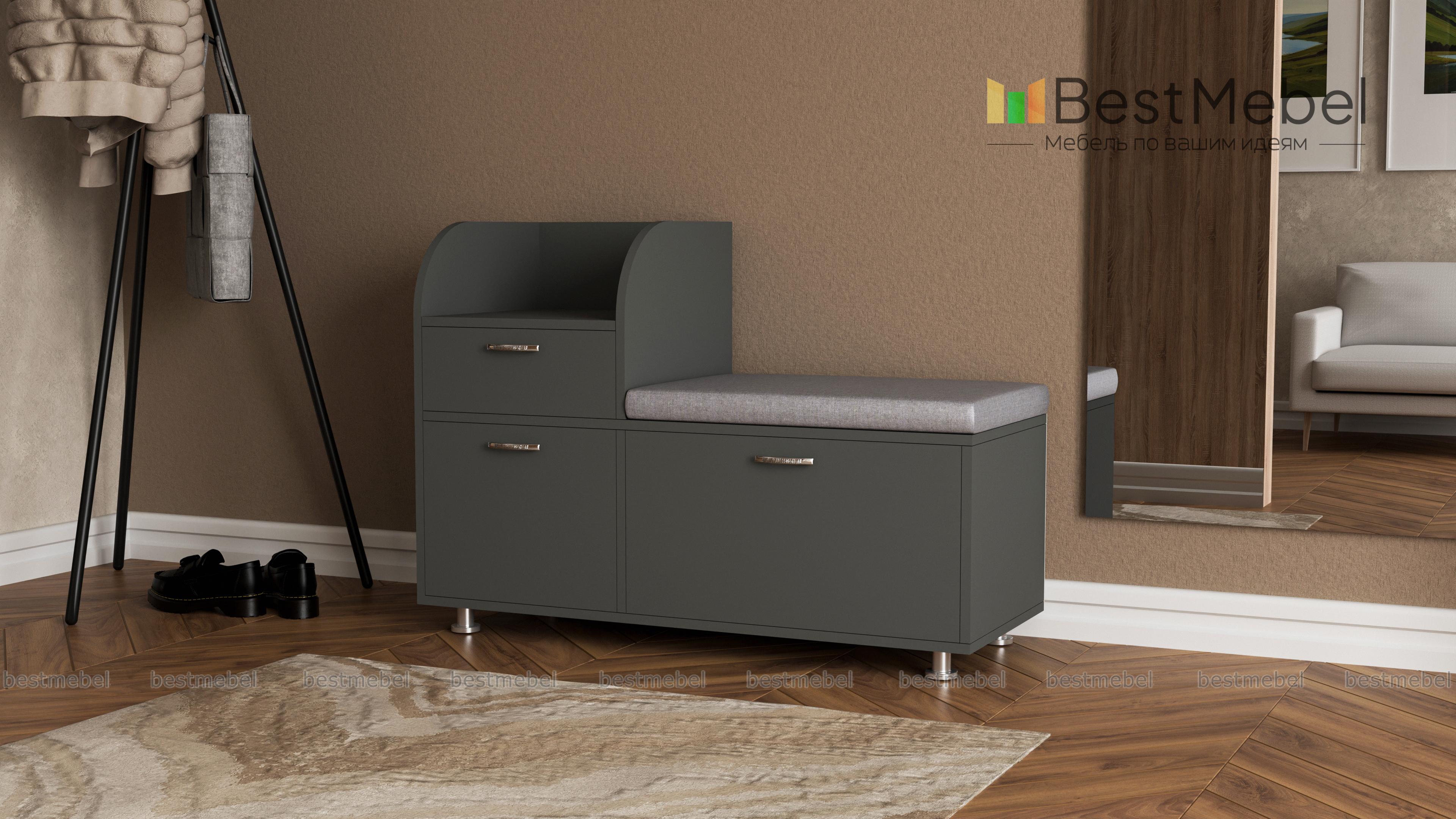 Обувница Стоун BMS поможет сделать интерьер входной зоны комфортным и функциональным. Комбинированная модель оборудована откидной секцией для хранения обуви, распашным отделением, выдвижным ящиком и столешницей со скругленными защитными бортиками для принадлежностей по уходу и аксессуаров. Сиденье с мягкой обивкой сделает процесс обувания удобнее, а устойчивость конструкции обеспечат регулируемые высокие опоры. Купить обувницу Стоун BMS по отличной цене приглашаем в наш интернет-магазин.