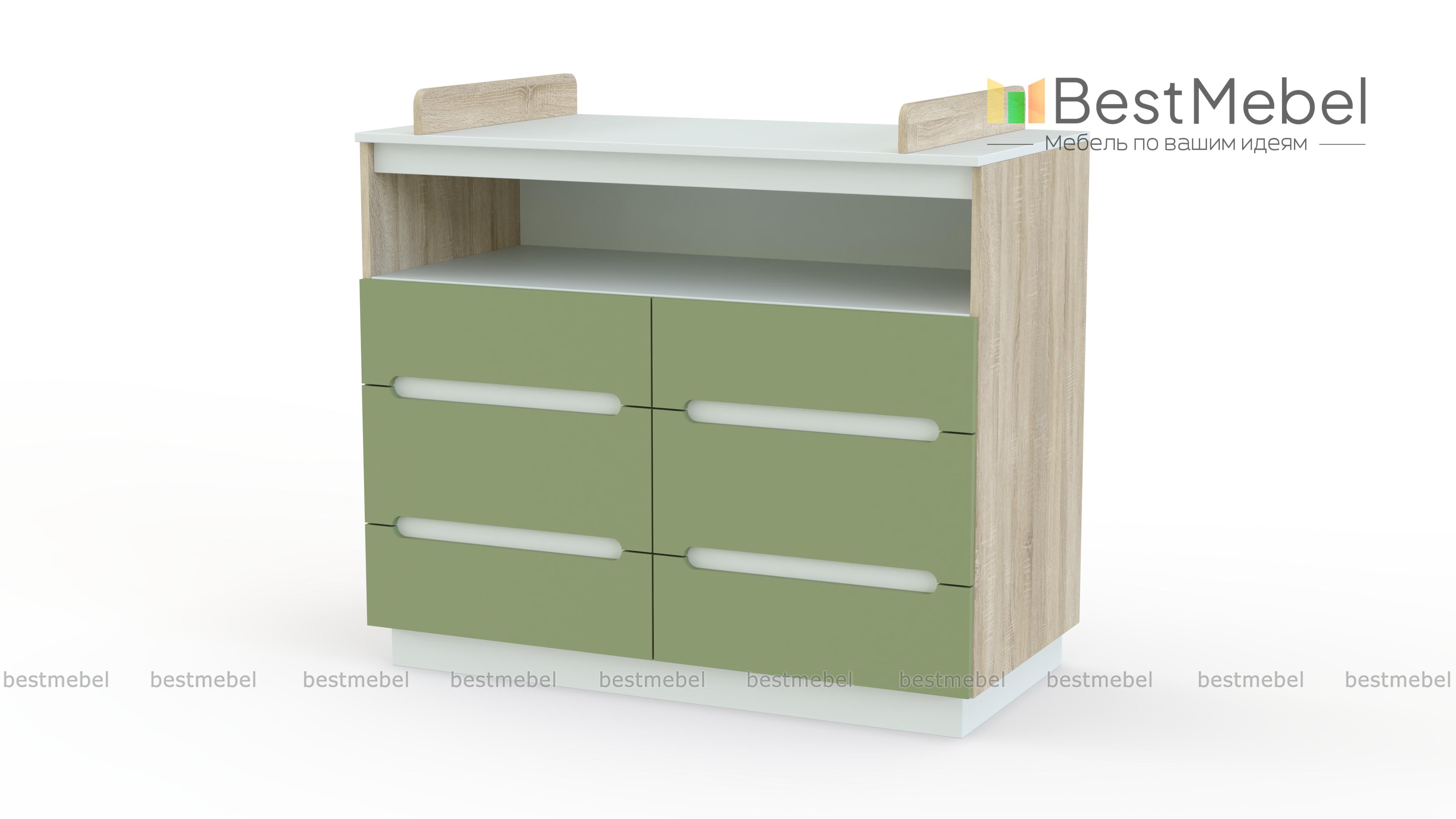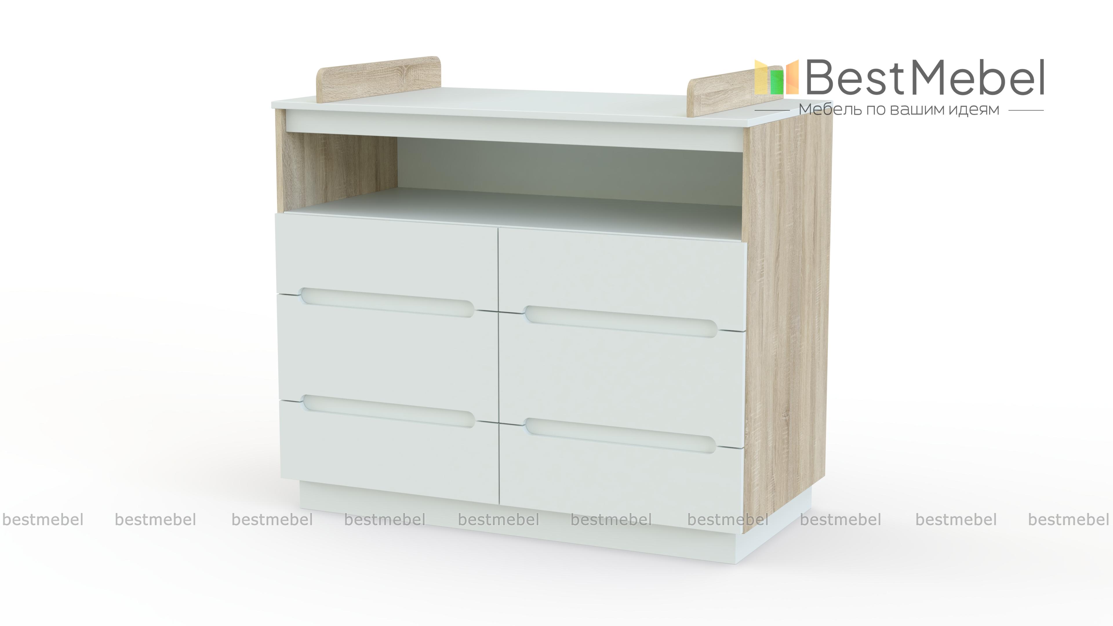 Пеленальный комод Юнга 3 BMS с округлыми вырезными ручками вы сможете использовать в интерьере детской и позже, когда малыш подрастет. Широкая модель с просторной нишей и шестью выдвижными ящиками незаменима для хранения средств гигиены, одежды, постельного белья и игрушек. На верхней панели, выполняющей функцию пеленального столика, имеются скругленные бортики для защиты ребенка от случайных падений. Купить пеленальный комод Юнга 3 BMS вы сможете в нашем интернет-магазине с выбором цвета по каталогу.