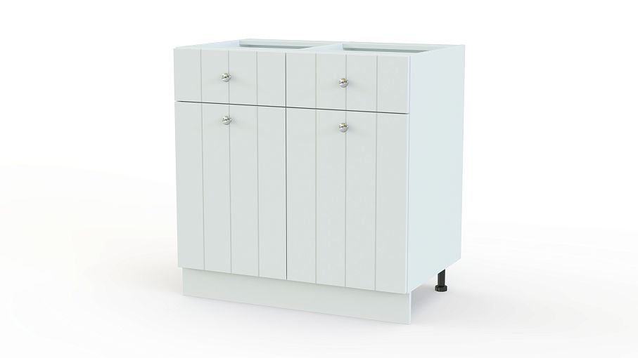 Шкаф нижний с 2-мя дверцами и 2-мя ящиками Прованс BMS – практичное дополнение комплекта для кухни. Напольный модуль отличается продуманной конструкцией, которая позволит удобно разместить столовые приборы, посуду и разнообразные бытовые мелочи. Под просторной столешницей располагаются два выдвижных ящика и распашное отделение с полкой. Пастельные фасады с фрезеровкой украшены ручками-кнопками под серебро. Купить шкаф нижний с 2-мя дверцами и 2-мя ящиками Прованс BMS для интерьера в популярном стиле вам поможет наш интернет-магазин.