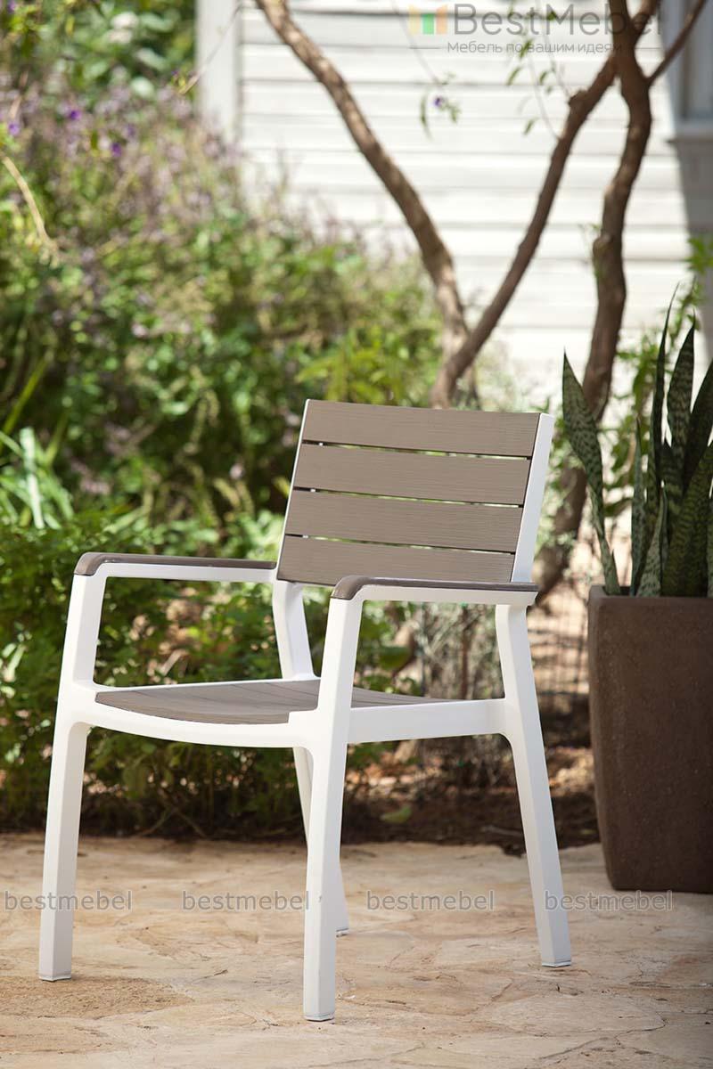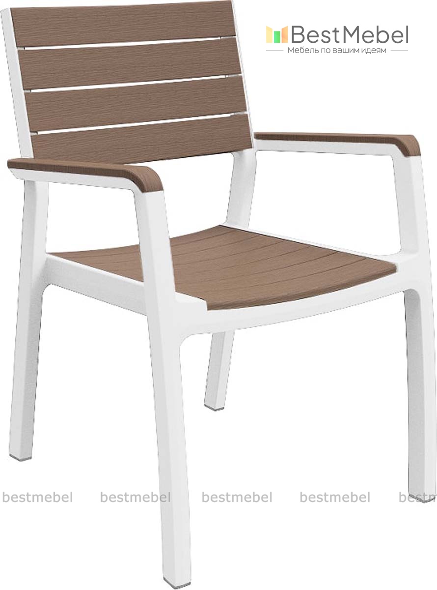 Стул c подлокотниками Harmony armchair предназначен для использования на открытом воздухе – балконах, террасах или в садах. Модель выполнена из прочного пластика со стилизацией под дерево, устойчивого к действию влаги и УФ-излучения, и надолго сохранит эстетичный внешний вид. Эргономичная форма стула, оборудованного высокой спинкой, чуть вогнутым сиденьем и подлокотниками, поможет расположиться максимально удобно. Купить стул c подлокотниками Harmony armchair для комфортного отдыха на природе вы всегда сможете в нашем интернет-магазине.