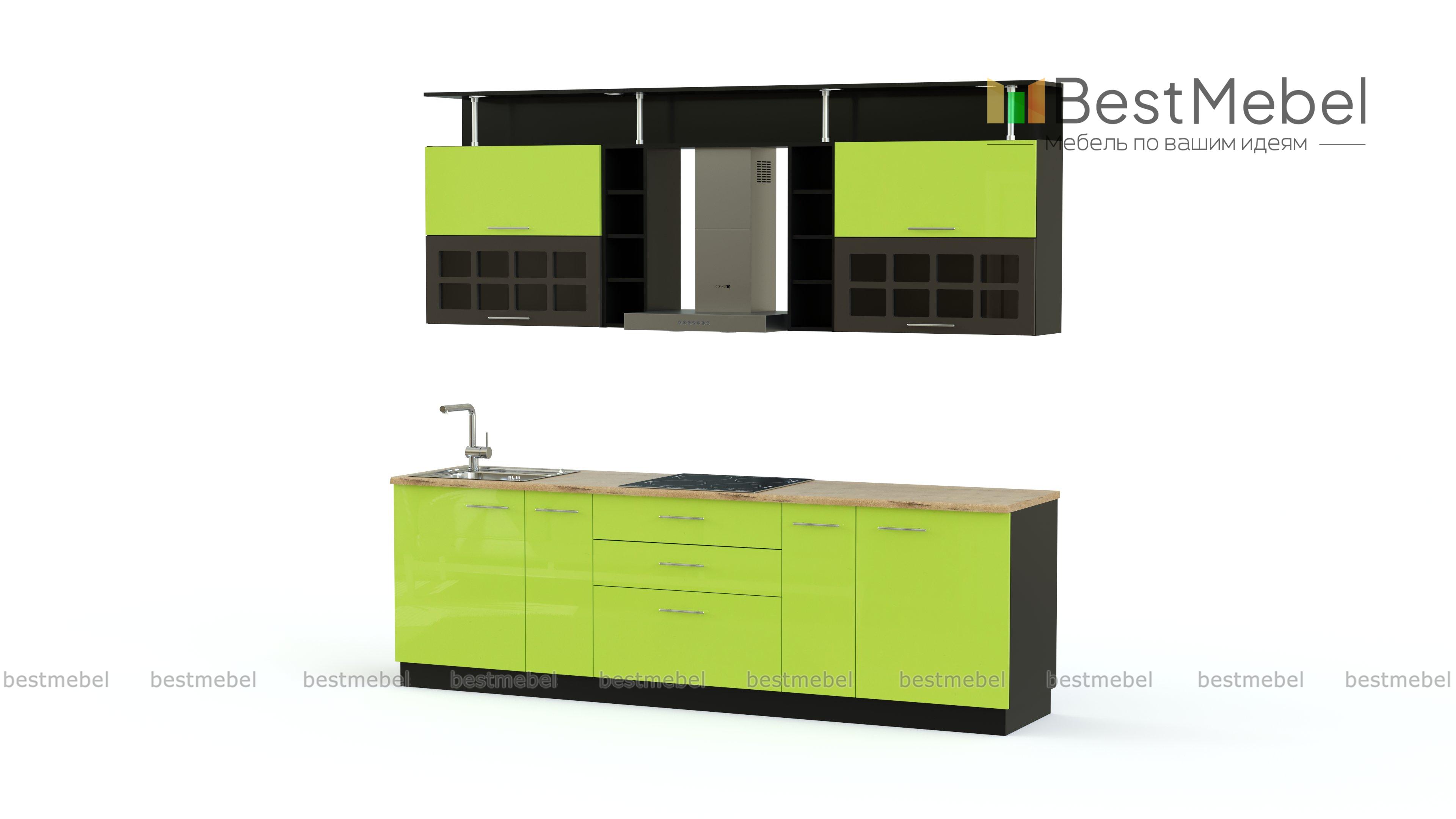 Кухня Лайм BMS порадует поклонников современного дизайна и смелых расцветок. Вместительная модель с яркими фасадами станет отличным выбором для просторных кухонь. В нижней части комплекта располагаются распашные отделения и выдвижные ящики, верхняя – оригинальное сочетание открытых полок и шкафчиков с откидными вверх дверцами. Посудные шкафчики декорированы решеткой, полки дополнены декоративными хромированными стойками. Надежная конструкция прослужит долгие годы, радуя хозяев и гостей дома. Купить кухню Лайм BMS по отличной цене приглашаем в наш интернет-магазин.