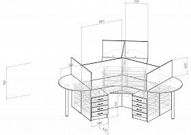 Стол угловой с тумбой и экраном BMS