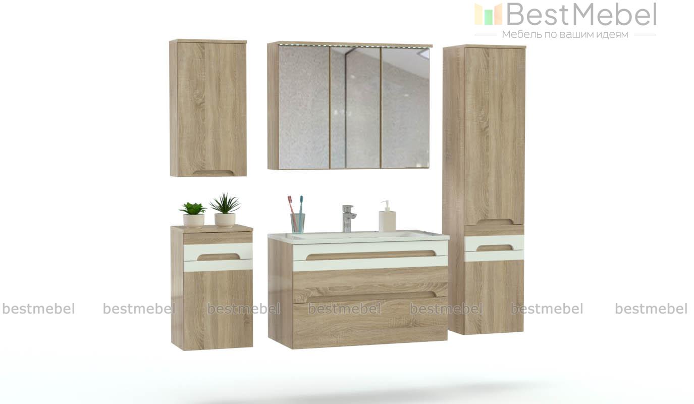 Комплект для ванной Фруст 3 BMS выглядит актуально в контрастном сочетании стального глянца и теплых древесных тонов. Композиция для большой ванной комнаты включает в себя широкую тумбу под раковину с двумя выдвижными ящиками, узкую тумбу, пенал, распашной шкафчик и трехстворчатый зеркальный шкаф со встроенной подсветкой. Большое количество мест для хранения поможет вам компактно разместить все необходимые гигиенические принадлежности, бытовую химию и текстиль. Купить комплект для ванной Фруст 3 BMS вы сможете выгодно в нашем интернет-магазине.