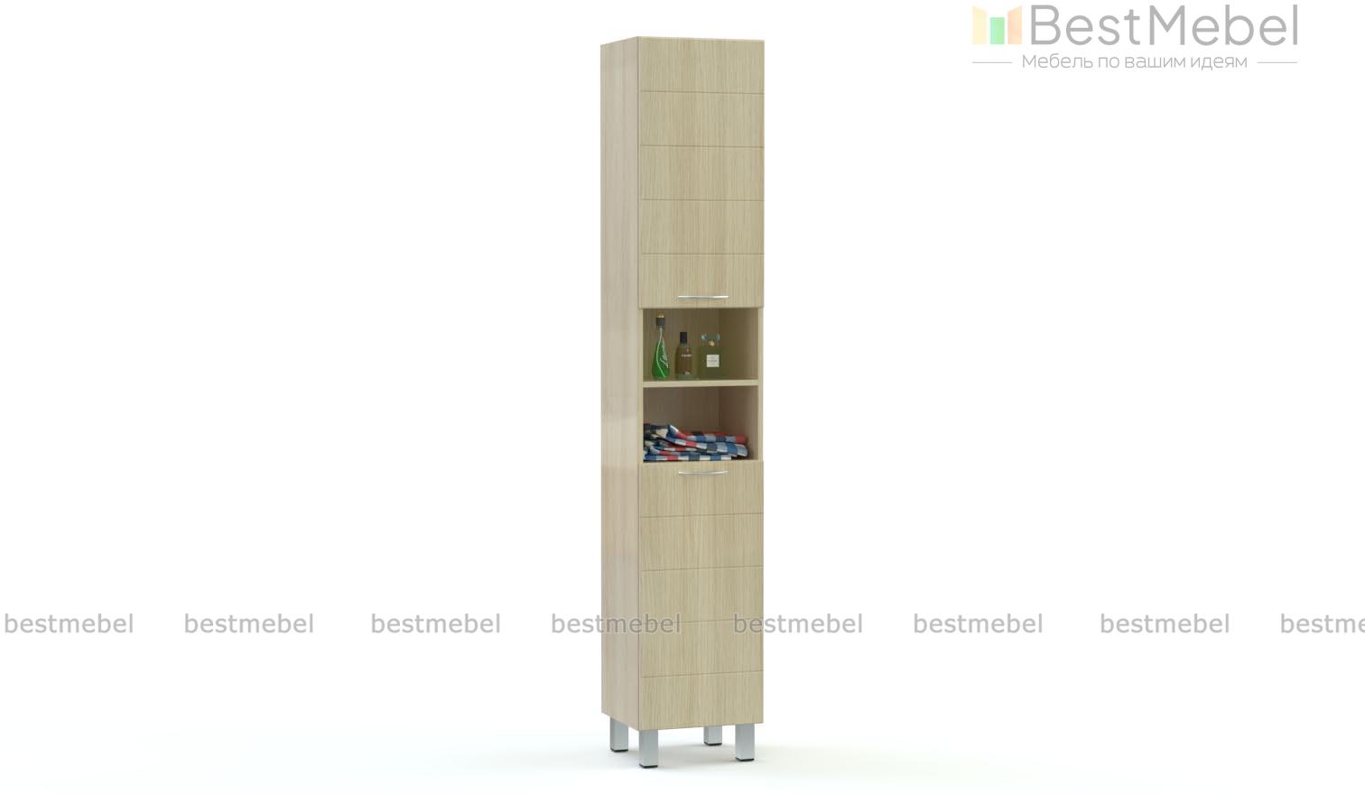 Красивый функциональный пенал стал частью интерьера в ванную комнату площадью 6 кв. м. Качество изделия отличное, фасады с хромированными ручками смотрятся дорого. Пенал собрался легко, есть возможность собрать двери в любую сторону. Доставили вовремя.
