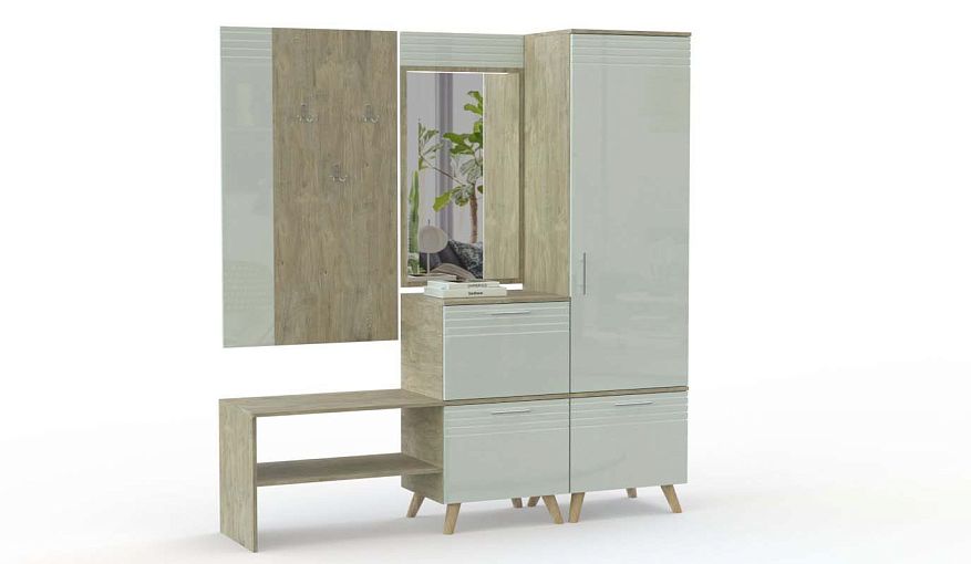 Прихожая Дана 17 BMS сразу привлекает к себе внимание контрастным цветовым решением и стильной отделкой. В модульной композиции для небольшого помещения гармонично сочетаются комбинированный с ящиком пенал и комод, навесное зеркало, широкая панель вешалки и открытая обувница. Высокие скошенные ножки и глянцевые поверхности с фрезеровкой добавят интерьеру легкости. Купить прихожую Дана 17 BMS вы сможете на сайте нашего интернет-магазина с выбором цвета и размеров.