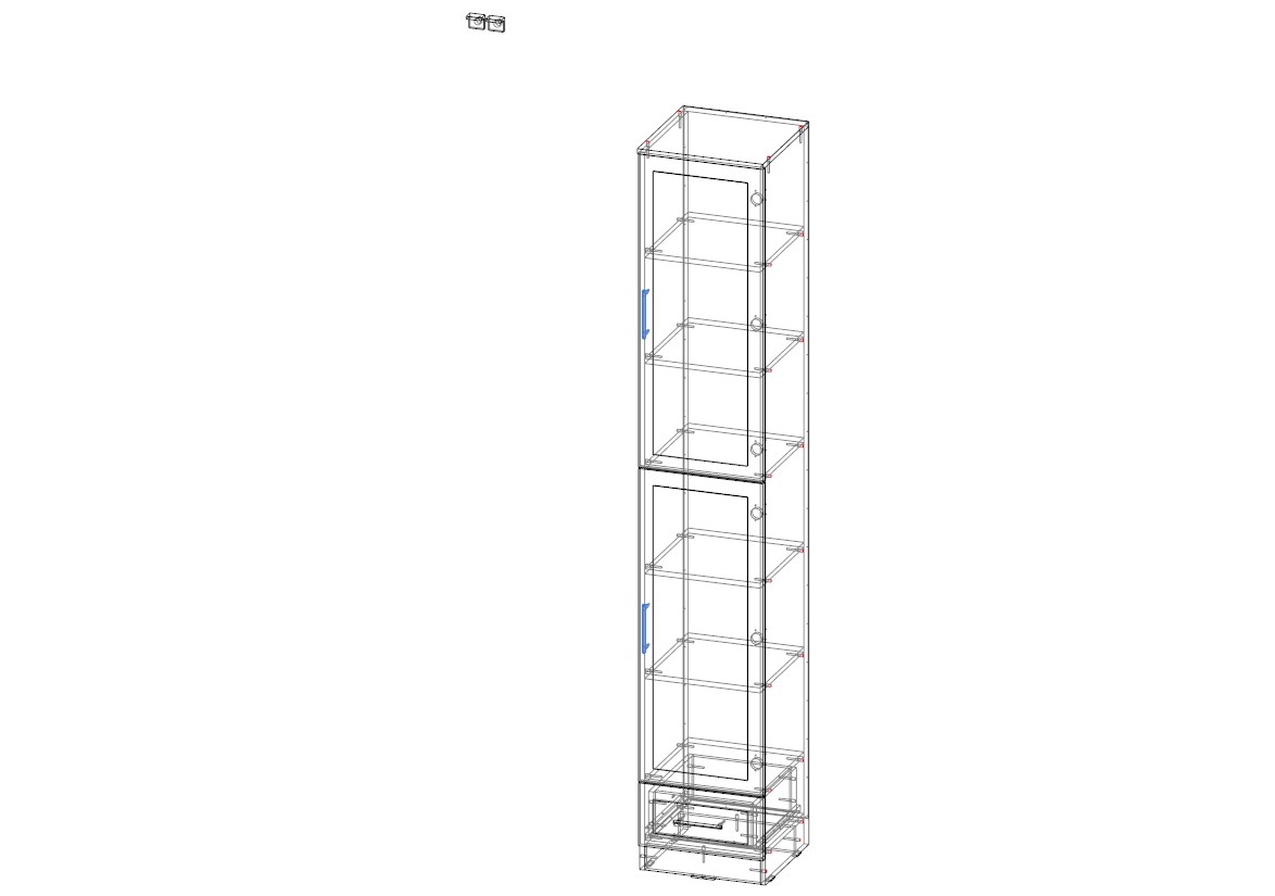 Библиотека Эгисф 25 BMS дополнит шкафную группу или может использоваться в малогабаритных помещениях самостоятельно. Вместительная за счет высоты, модель оборудована двумя распашными отделениями с застекленными дверцами и выдвижным ящиком для мелочей в основании. Просторные полки оптимально подходят для хранения книг разного формата и документов. У шкафа петли справа, ручки слева.