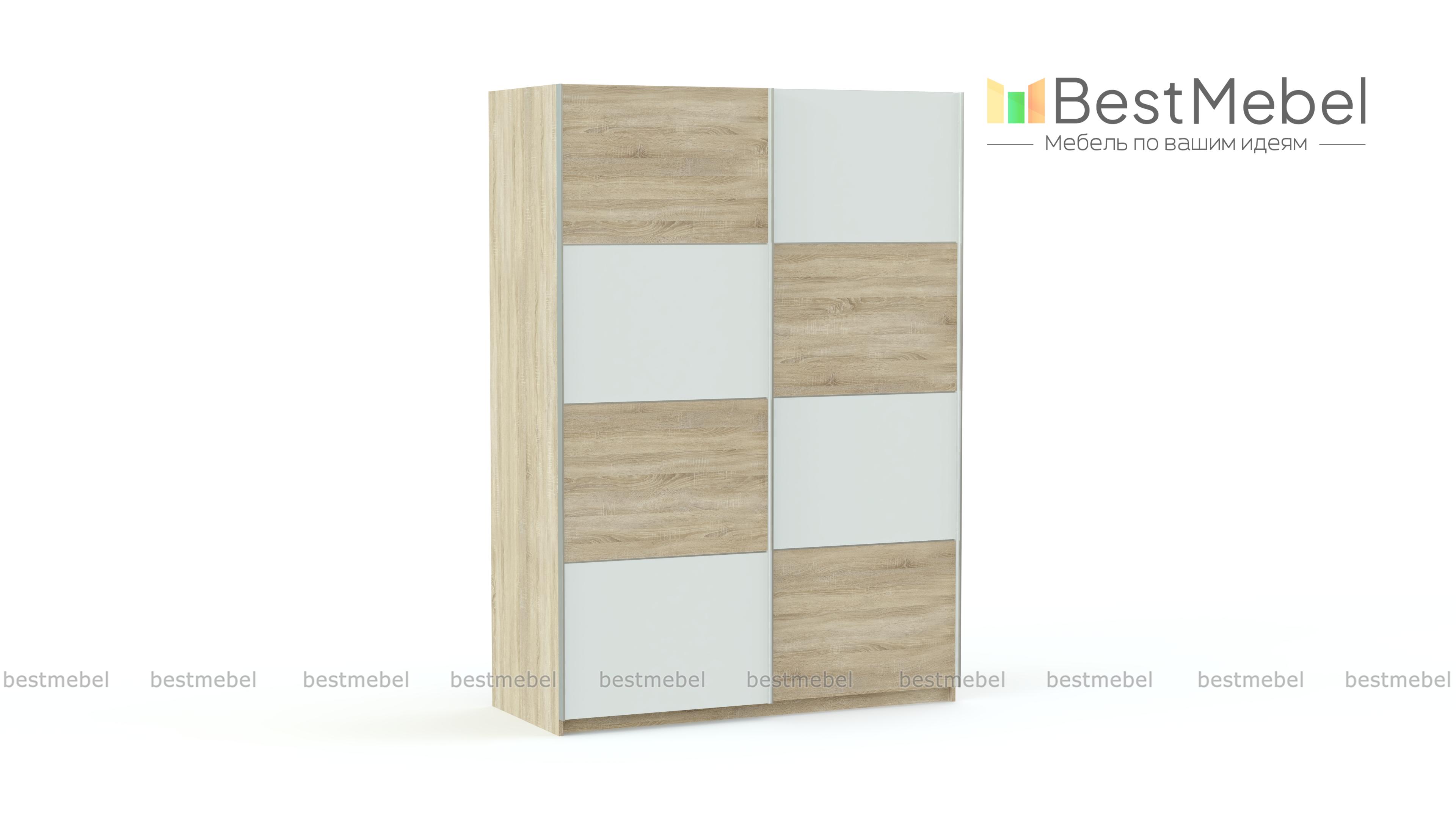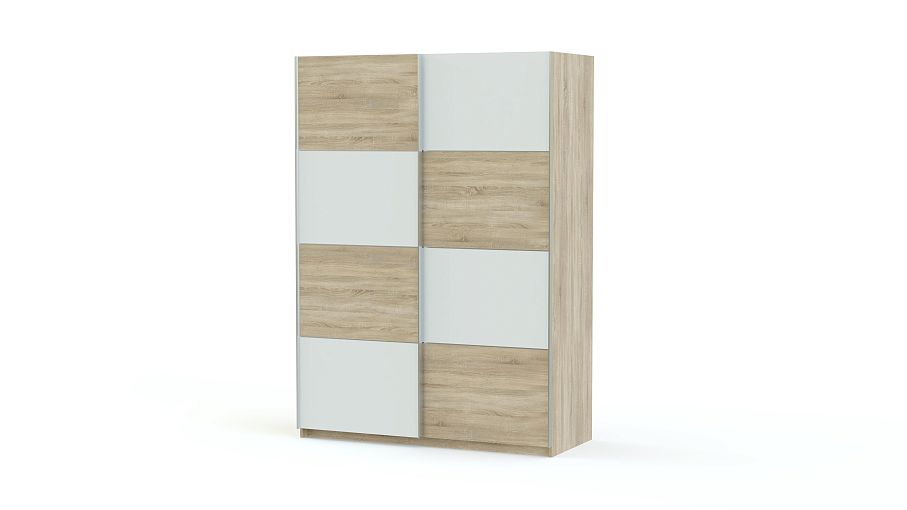 Компактная и доступная по цене модель Alfa BMS – практичное и стильное решение для современной гостиной, прихожей или спальни. Универсальность шкафу обеспечивает нейтральная расцветка фасадов, представляющая собой расположенные в шахматном порядке, белые и под массив дерева вставки. Раздвижные двери сэкономят пространство, а продуманная система хранения позволит аккуратно разместить предметы гардероба. Модель оборудована стандартными отделениями с полками и штангой для одежды.