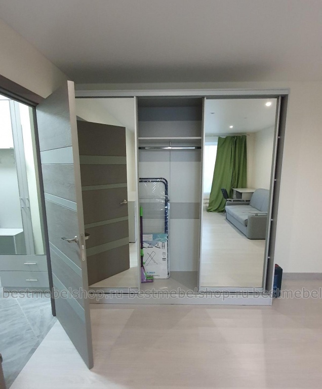 Шкаф отличный, большой и вместительный. Заказали без рисунков на стёклах и в сером цвете. Отлично смотрится. Собирал сборщик, быстро и качественно. Доставили в срок.