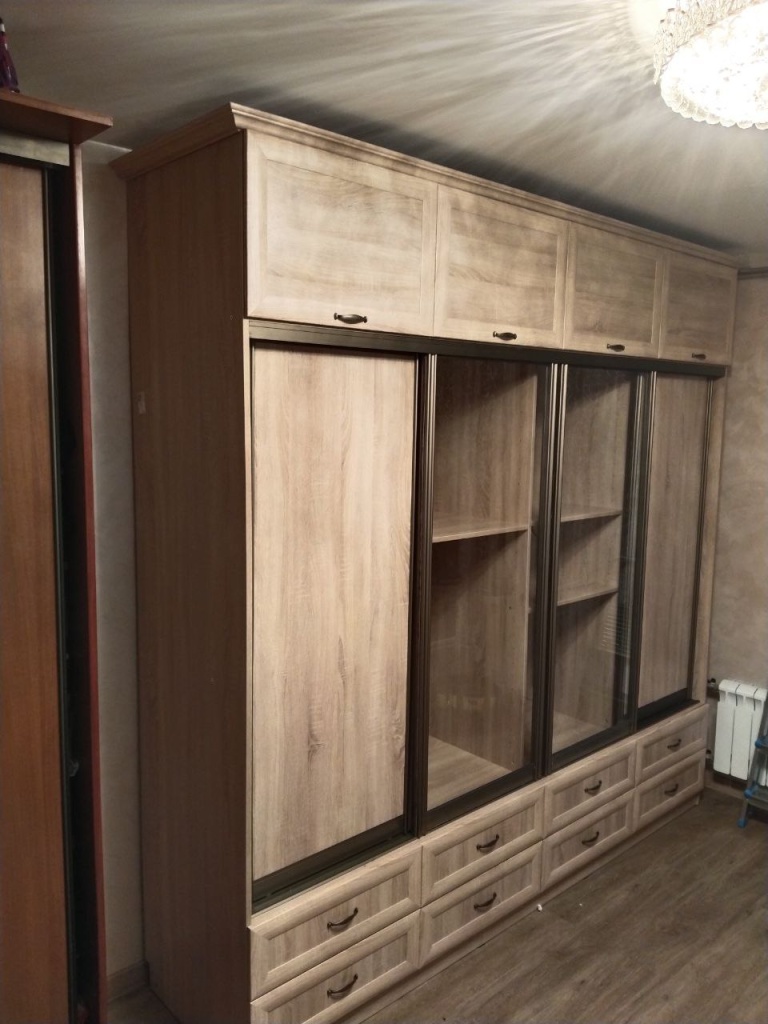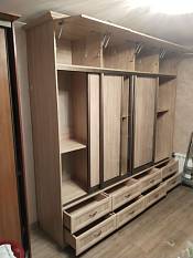 Шкаф вместительный, красивый. Собирали самостоятельно около недели, работы было много. Все отверстия были разделены точно. Немного пришлось подпиливать направляющие для системы купе, так как ширина шкафа всборе оказалась чуть меньше длины направляющих. Дверцы верхних полок на газлифтах, так что убирать и доставать вещи можно только со стремянки. Из недостатков: на панелях имеются сколы, пришлось подкрашивать; направляющие под систему купе изначально не привезли, ждали довоз в течении 10 дней; по низу нет регулировки, обычные пятки; тяжело дозвониться, но всегда перезванивают; слепая схема изделия, нет инструкции по сборки. Схемы изделия с номерами позиций выполненные с разных ракурсов можно запросить в гарантийном отделе, скинут по электронной почте.