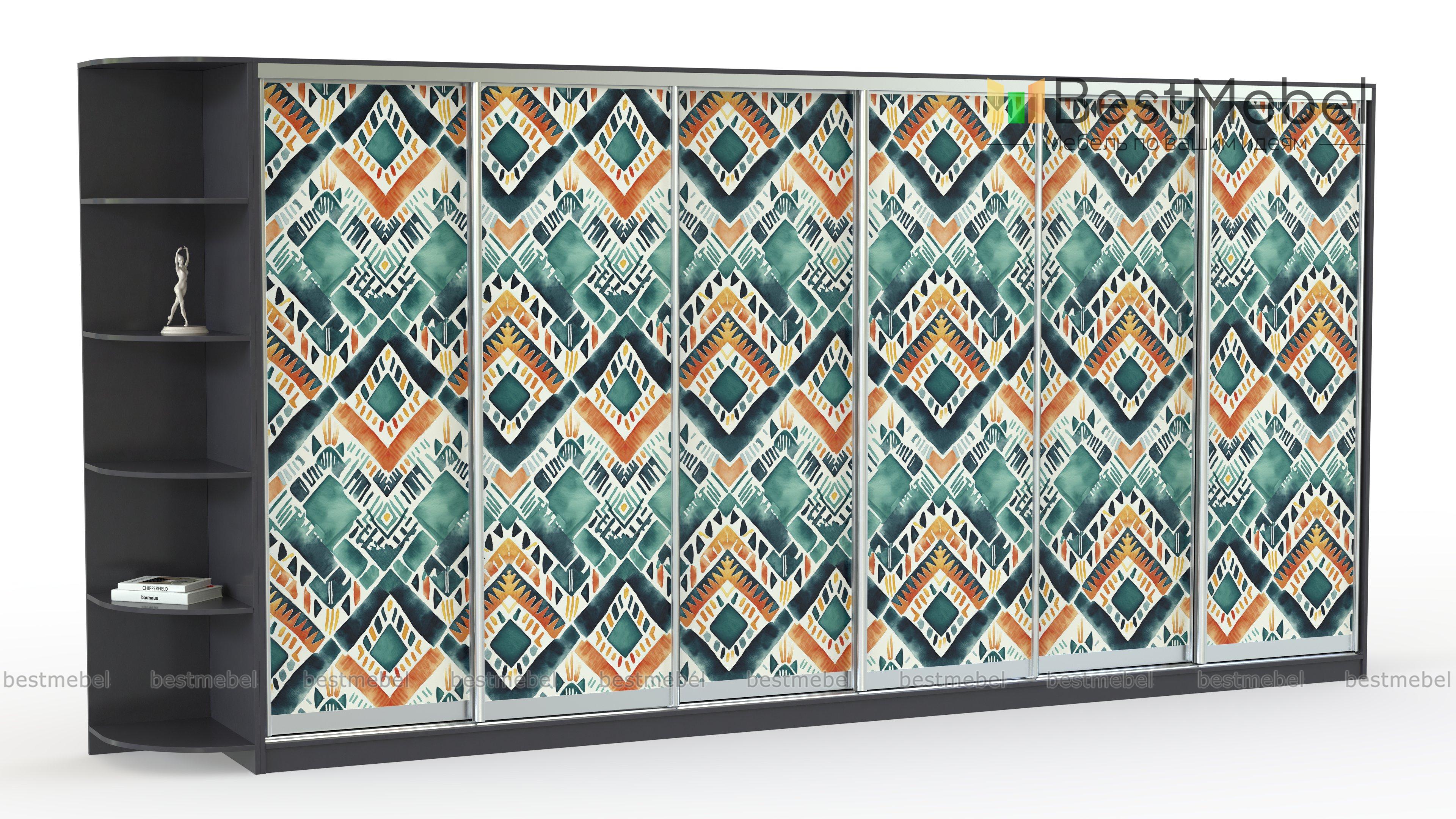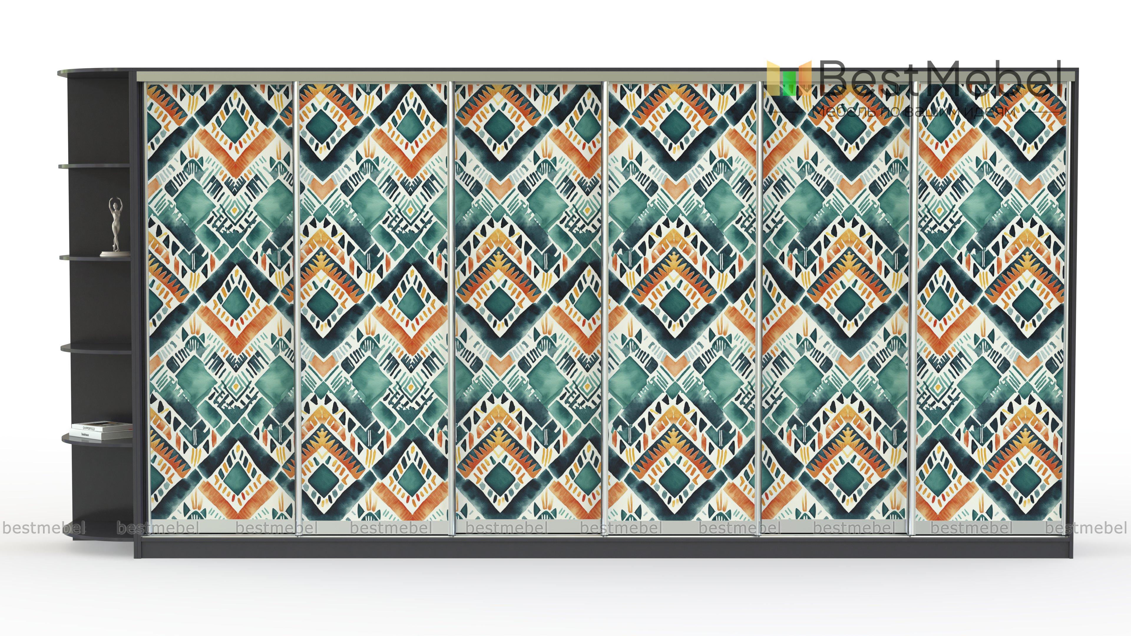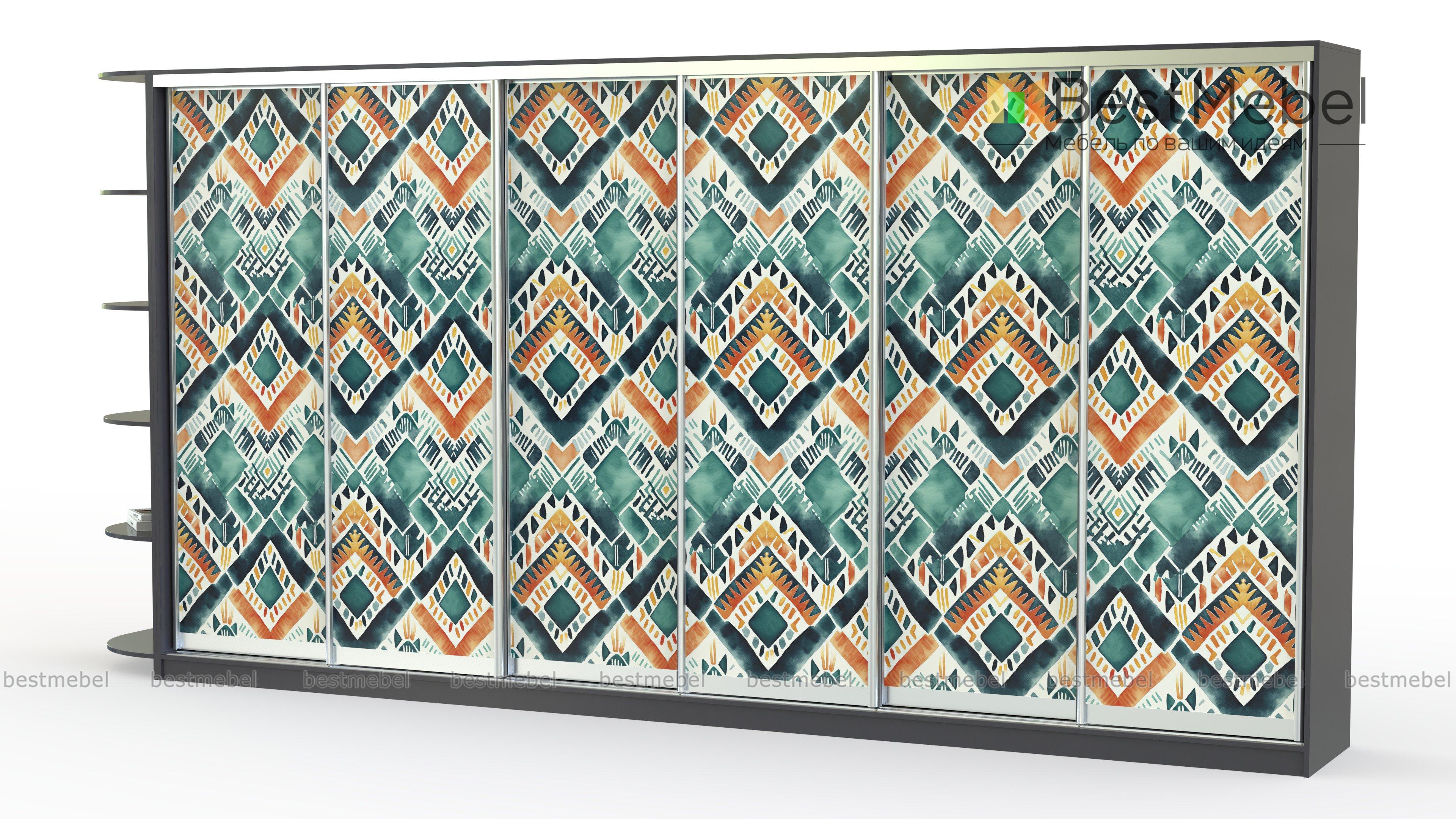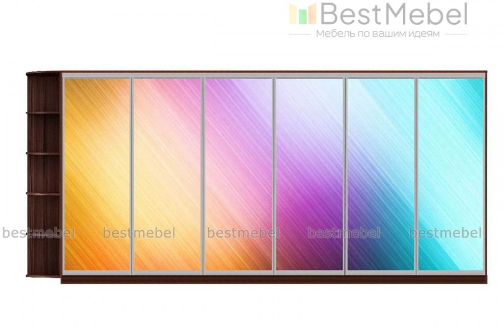 Шкаф-купе Радуга 19 BMS добавит в интерьер красок и модной этники. Сплошной фасад габаритной шестидверной модели украшают цветные ромбы, нанесенные в технике фотопечати. Совмещенный с книжным стеллажом шкаф поможет вам компактно разместить большое количество вещей - от верхней одежды до декоративных мелочей, разгрузив комнату от лишней мебели. Купить шкаф-купе Радуга 19 BMS в спальню, гостиную или прихожую вы сможете на сайте нашего интернет-магазина.