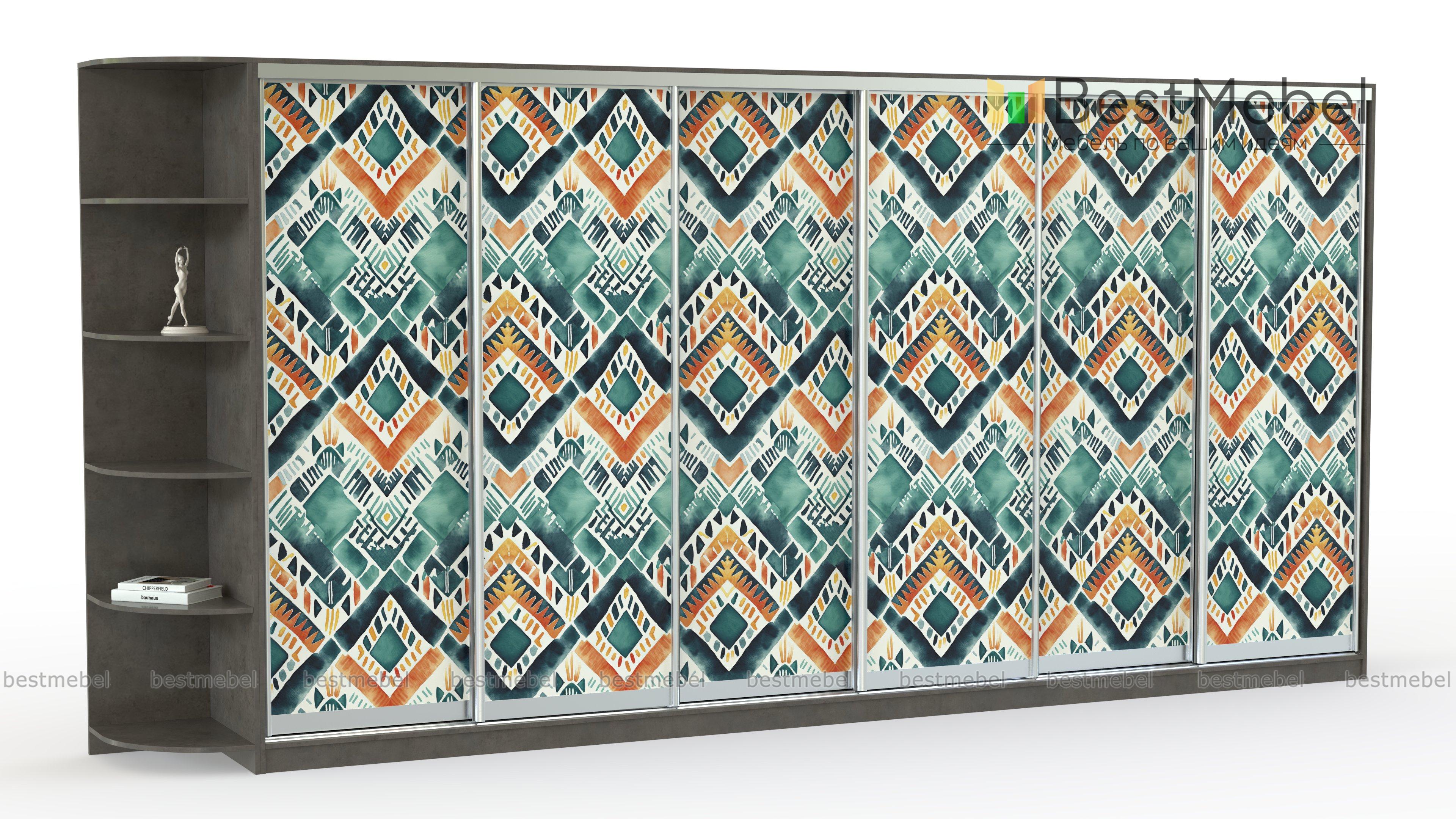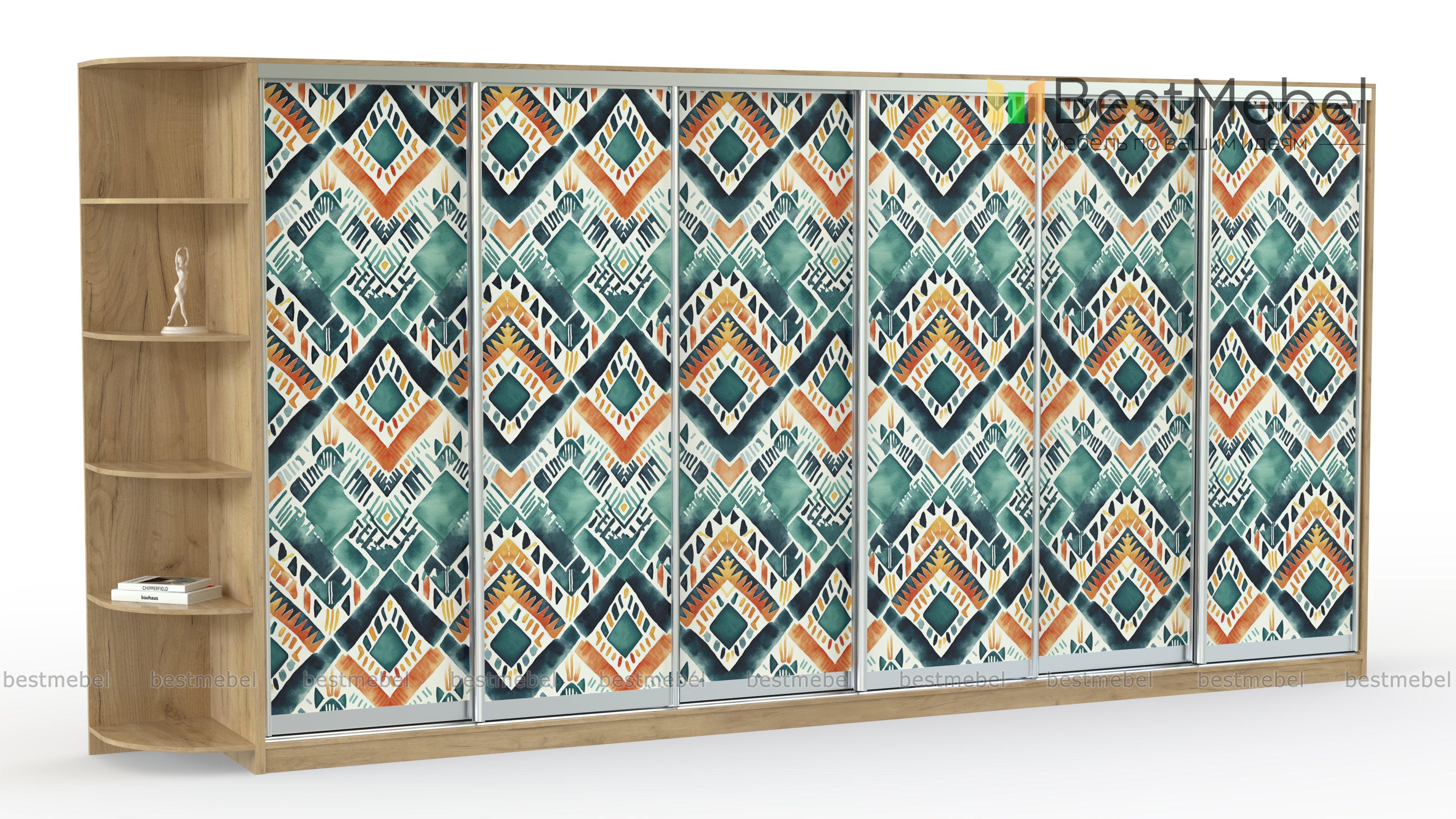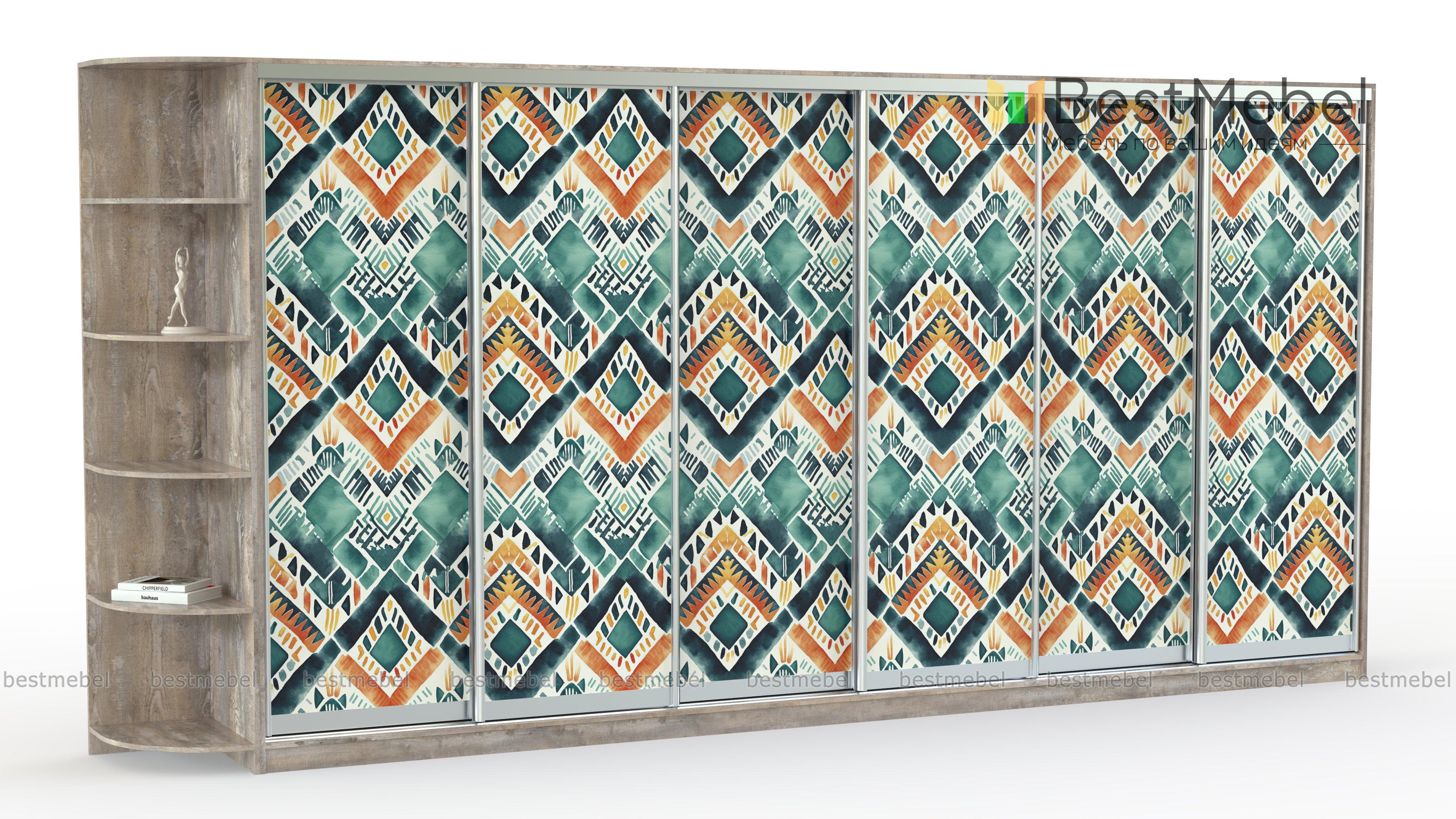 Шкаф-купе Радуга 19 BMS добавит в интерьер красок и модной этники. Сплошной фасад габаритной шестидверной модели украшают цветные ромбы, нанесенные в технике фотопечати. Совмещенный с книжным стеллажом шкаф поможет вам компактно разместить большое количество вещей - от верхней одежды до декоративных мелочей, разгрузив комнату от лишней мебели. Купить шкаф-купе Радуга 19 BMS в спальню, гостиную или прихожую вы сможете на сайте нашего интернет-магазина.