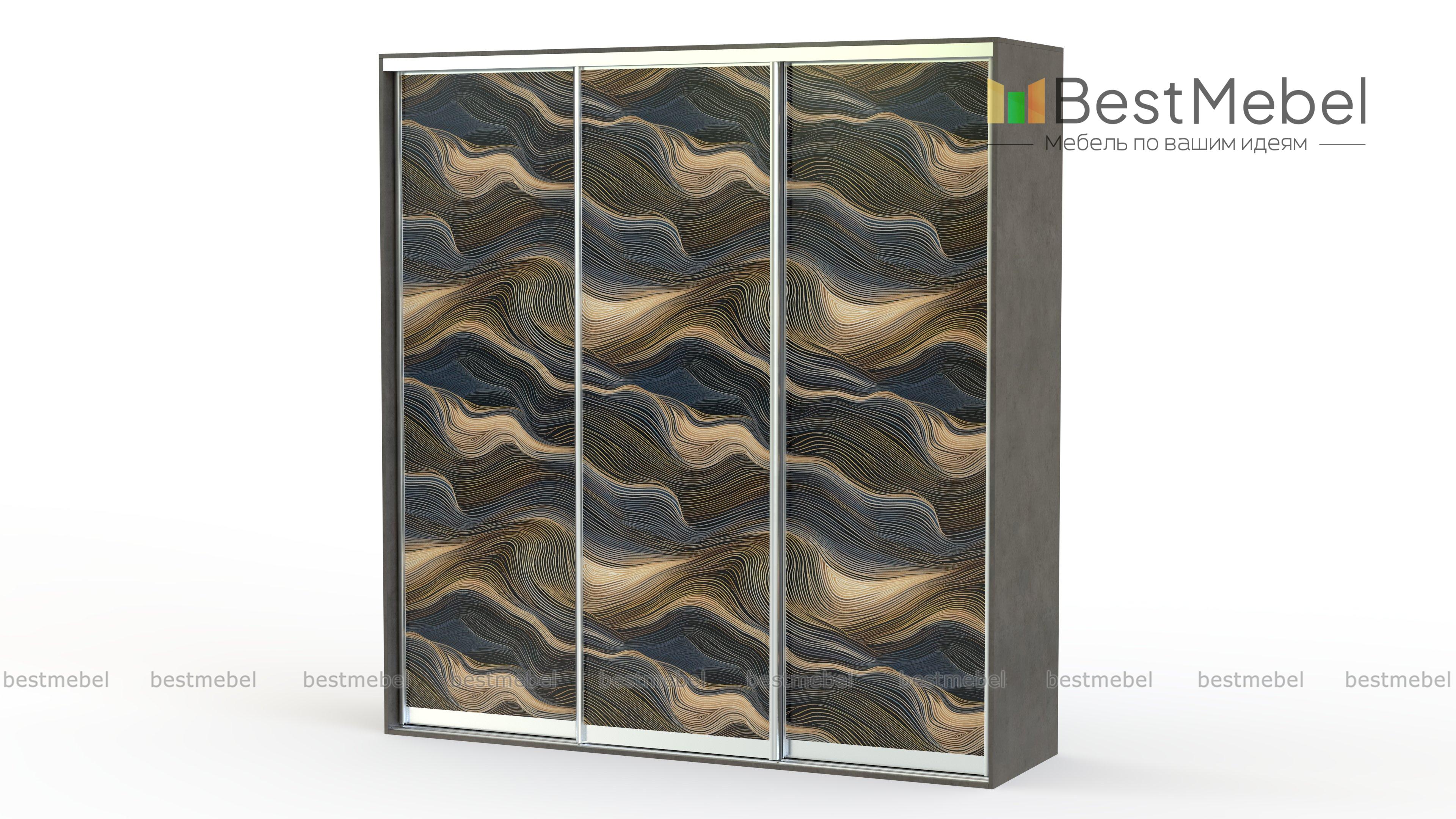 Шкаф-купе Шоколад 17017 BMS украшен волнообразным рисунком-фотопечатью с насыщенной, сложной палитрой. Модель станет эффектным дополнением интерьера в современной стилистике, прекрасно сочетаясь с другой мебелью и текстилем. Система хранения трехдверного шкафа предусматривает отделения как для предметов гардероба, так и для домашнего текстиля. Купить шкаф-купе Шоколад 17017 BMS с учетом оптимальных размеров вы сможете в нашем интернет-магазине.
