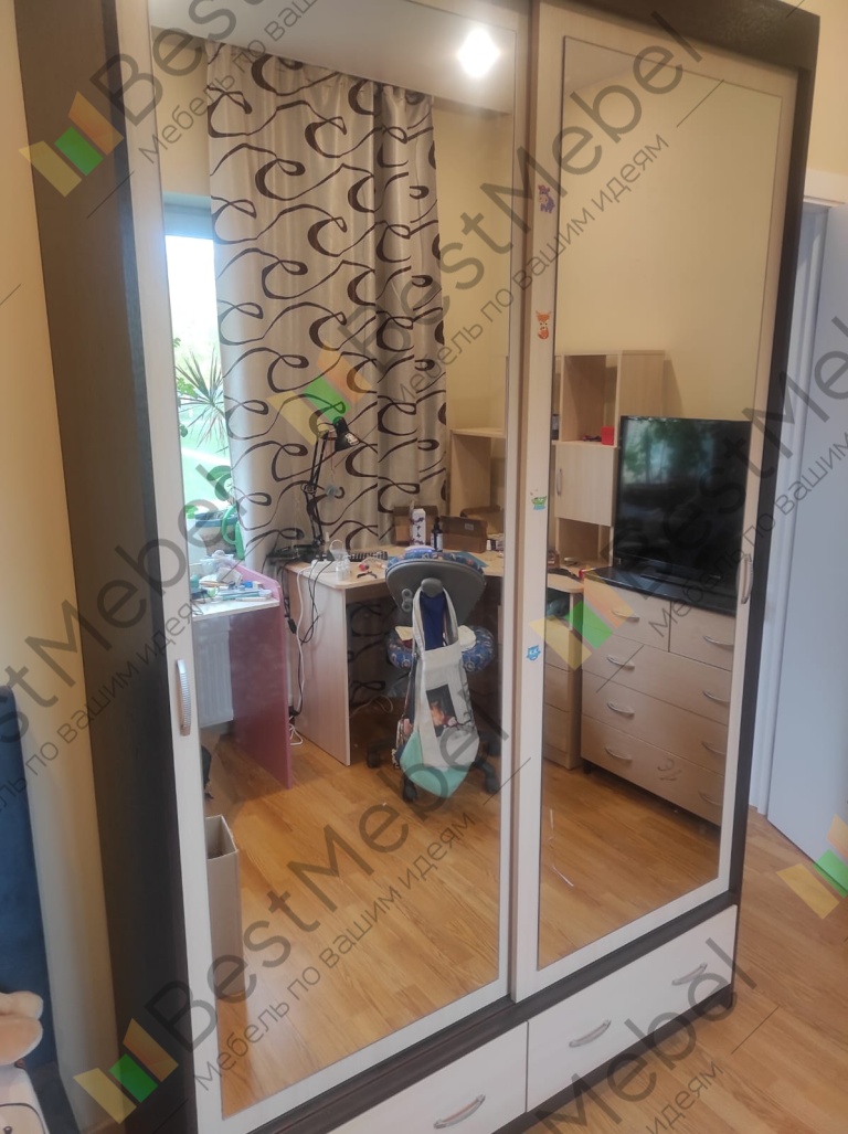 Шкаф-купе Светлана 13 BMS имеет практичную комбинированную конструкцию, а лаконичный дизайн делает модель универсальной. В верхней части шкафа располагается просторное отделение-купе, а в нижней – два вместительных выдвижных ящика. Выполненный в древесных тонах, шкаф помогает создать уютный интерьер, а ростовые зеркала на фасаде визуально расширят границы небольшой комнаты. Купить шкаф-купе Светлана 13 BMS приглашаем в наш интернет-магазин с возможностью выбора размеров.