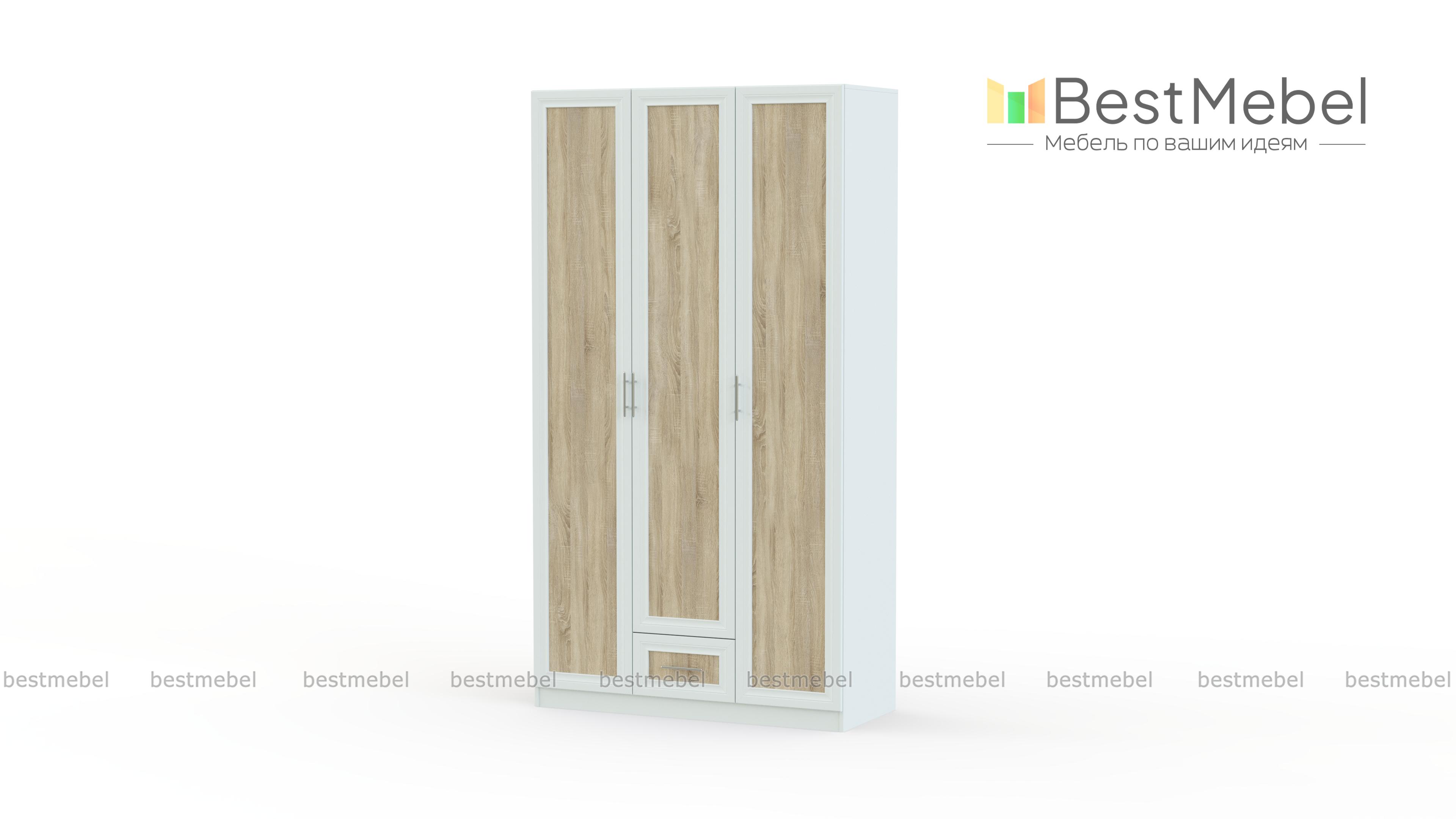 Распашной шкаф Крона 13 BMS отличается строгой элегантностью и контрастным цветовым решением в древесных тонах. Трехдверная модель с рамочными фасадами оборудована платяным отделением со штангой и отделением с полками, выдвижным ящиком для мелких вещей. Практичные средние габариты позволят без труда вписать шкаф как в просторные, так и в небольшие помещения. Купить распашной шкаф Крона 13 BMS, надежный и долговечный, вы сможете в нашем интернет-магазине.