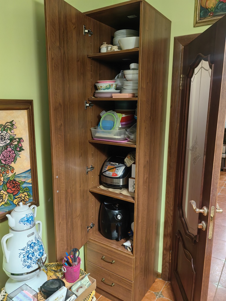 Классная вещь! Предупредили, привезли, подняли на этаж (с лифтом). Упаковано очень достойно. Сам собрал за 1,5 часа без проблем. См фото как вписался этот шкафчик в интерьер кухни.
