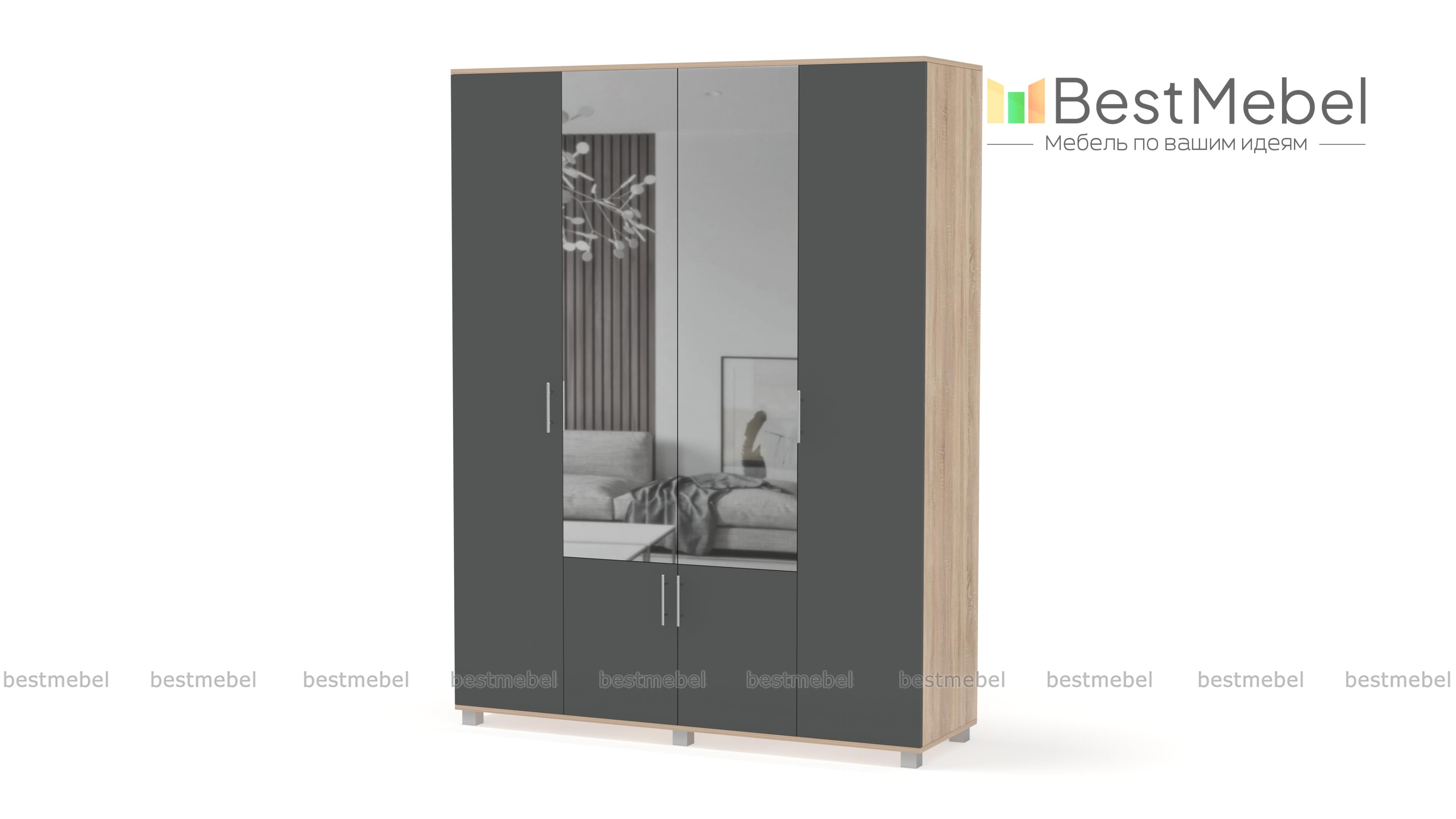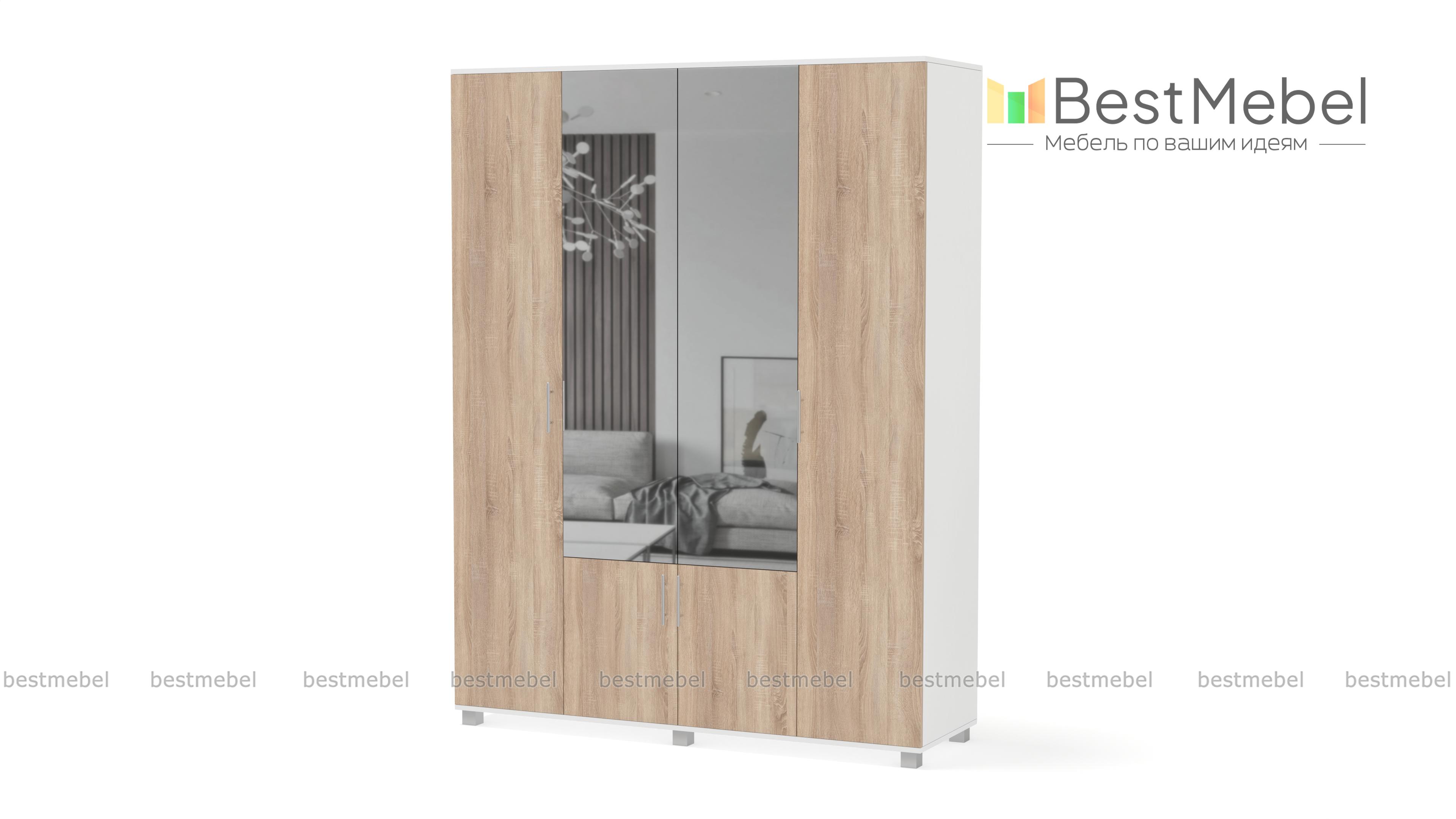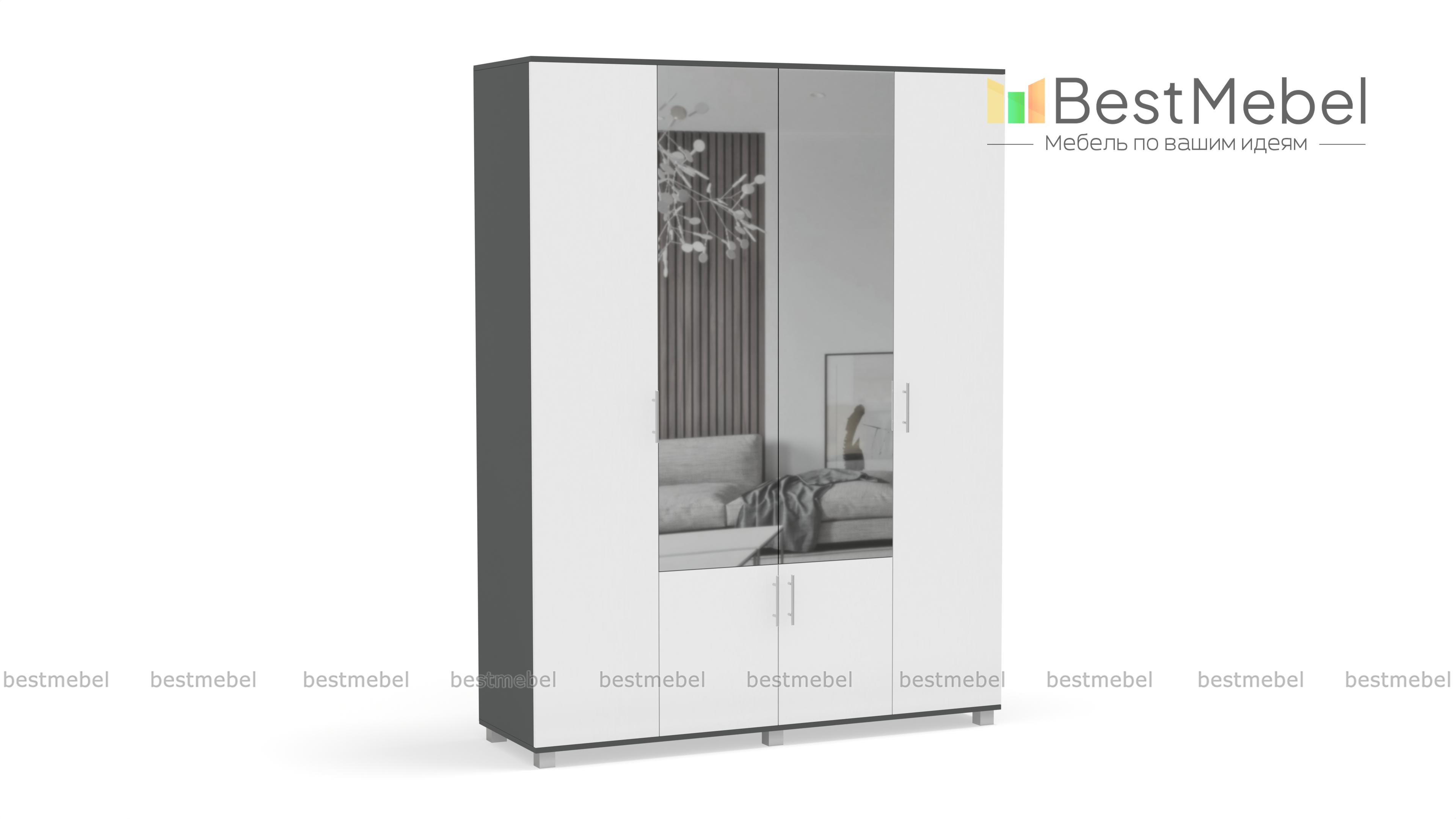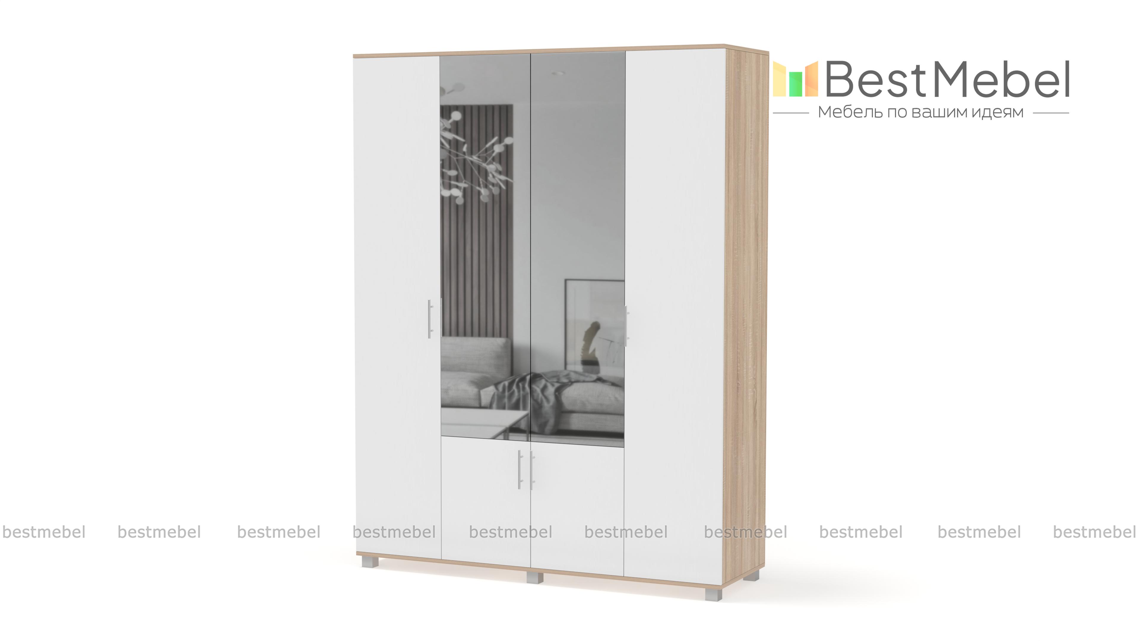 Шкаф КАРИНА 4-х створчатый с зеркалом К42 BMS – вместительная модель, незаменимая в интерьере спальни или прихожей. Универсальное сочетание контрастных оттенков легко вписать в интерьер, а зеркальные вставки в центральной части сделают небольшое помещение визуально просторнее. Внутреннее наполнение шкафа из двух отделений с выдвижными штангами и полок позволит аккуратно разместить одежду, обувь и аксессуары. Купить шкаф КАРИНА 4-х створчатый с зеркалом К42 BMS по доступной цене приглашаем в наш интернет-магазин.