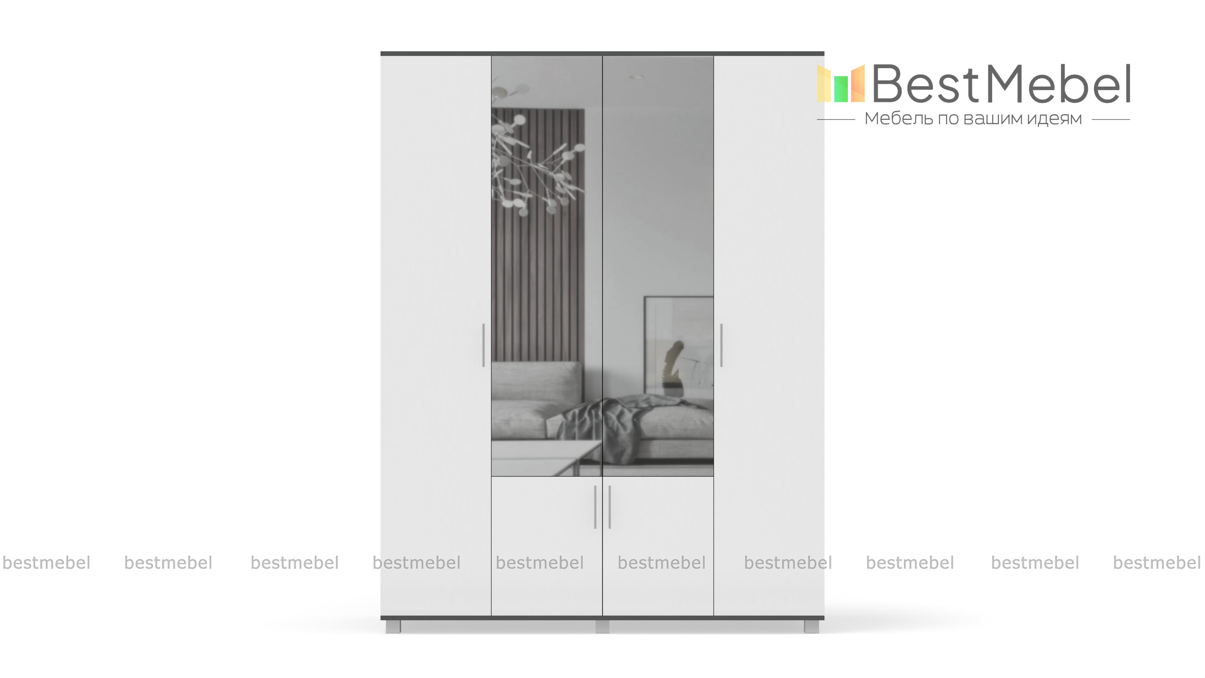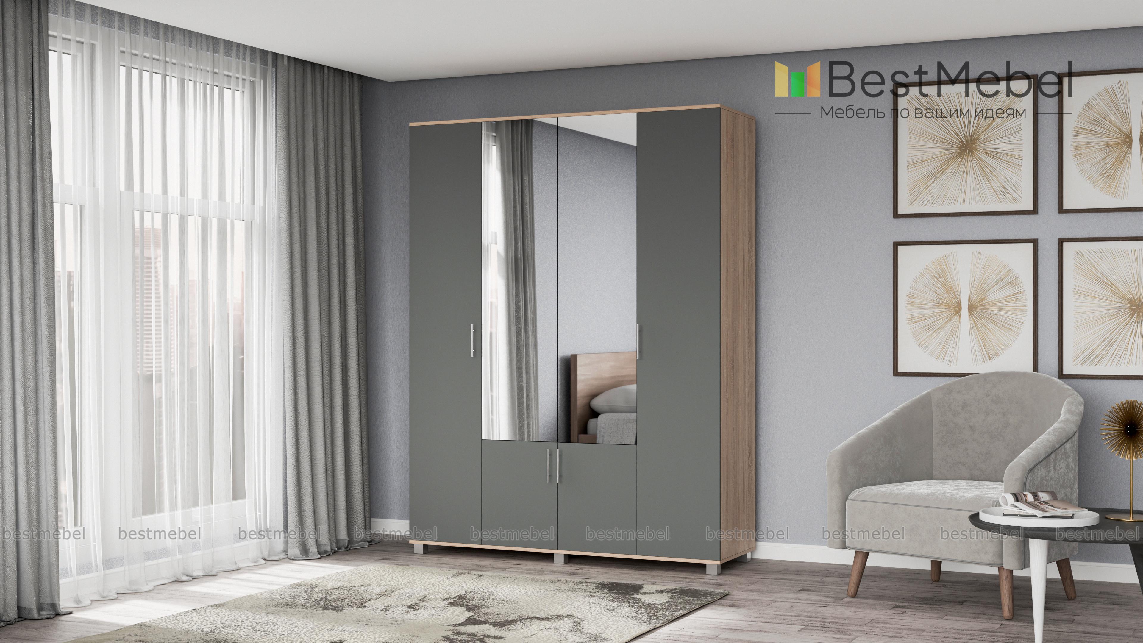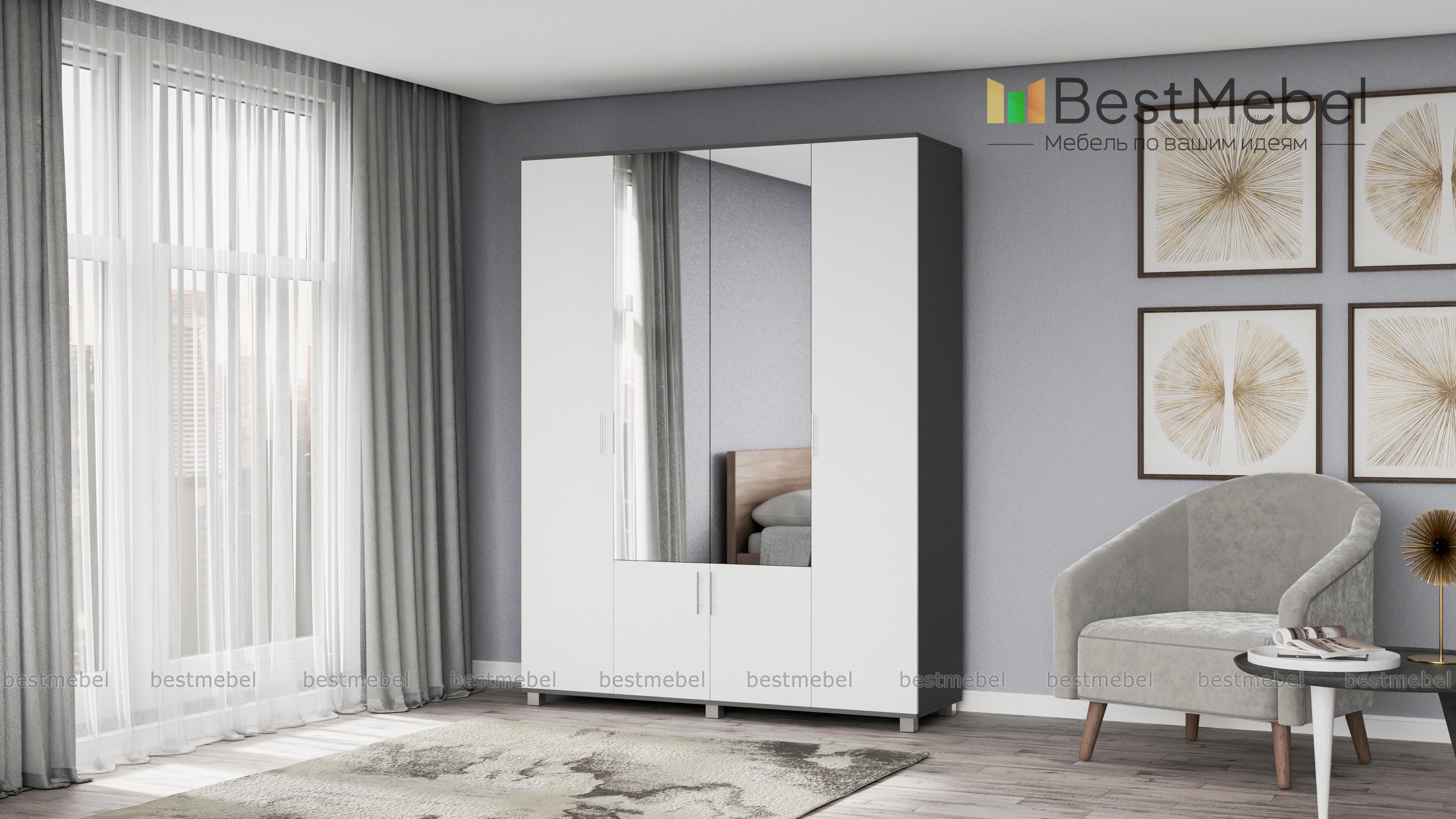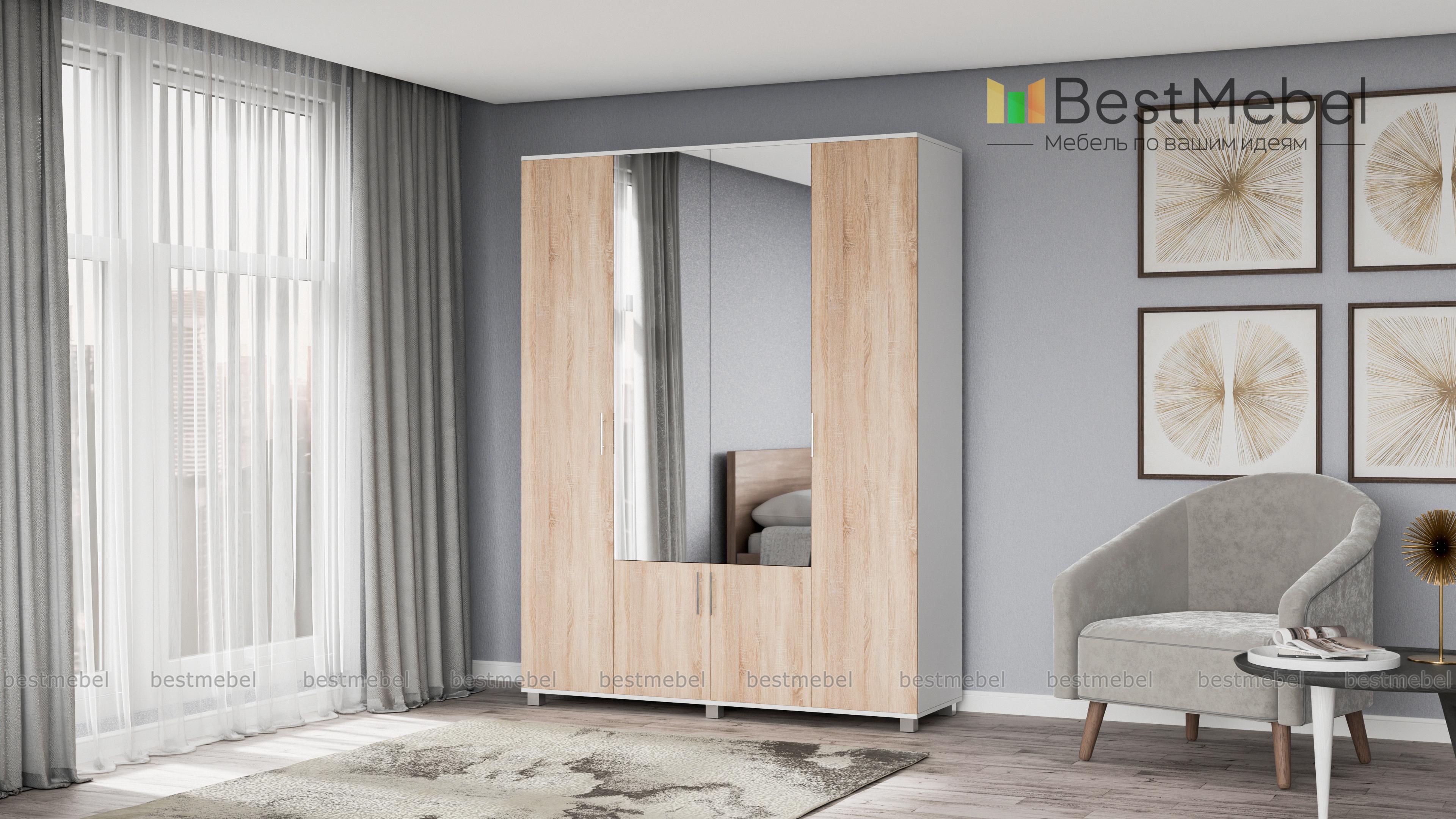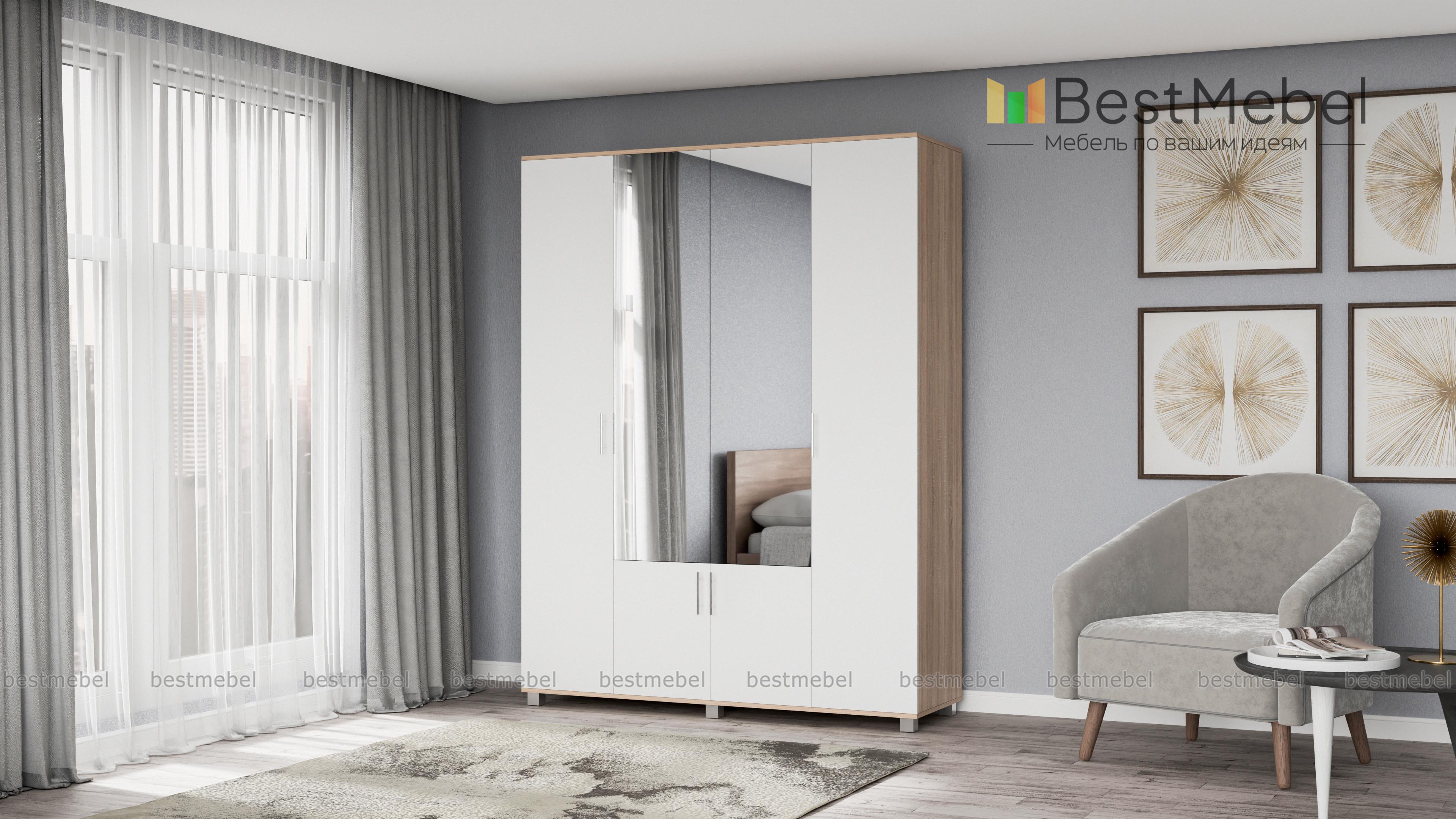 Шкаф КАРИНА 4-х створчатый с зеркалом К42 BMS – вместительная модель, незаменимая в интерьере спальни или прихожей. Универсальное сочетание контрастных оттенков легко вписать в интерьер, а зеркальные вставки в центральной части сделают небольшое помещение визуально просторнее. Внутреннее наполнение шкафа из двух отделений с выдвижными штангами и полок позволит аккуратно разместить одежду, обувь и аксессуары. Купить шкаф КАРИНА 4-х створчатый с зеркалом К42 BMS по доступной цене приглашаем в наш интернет-магазин.