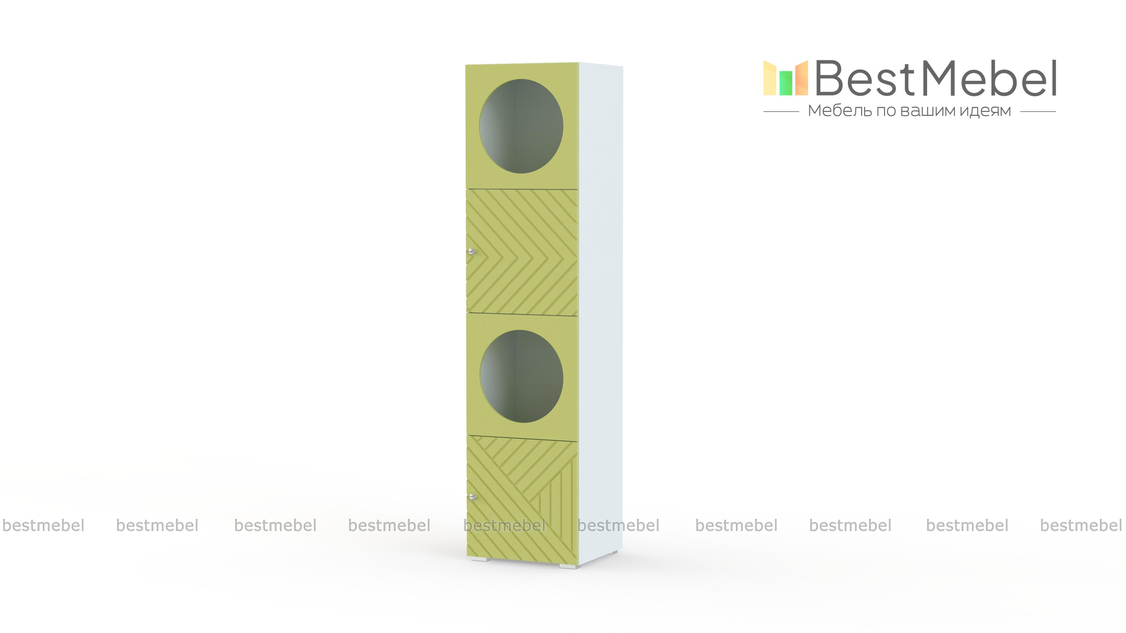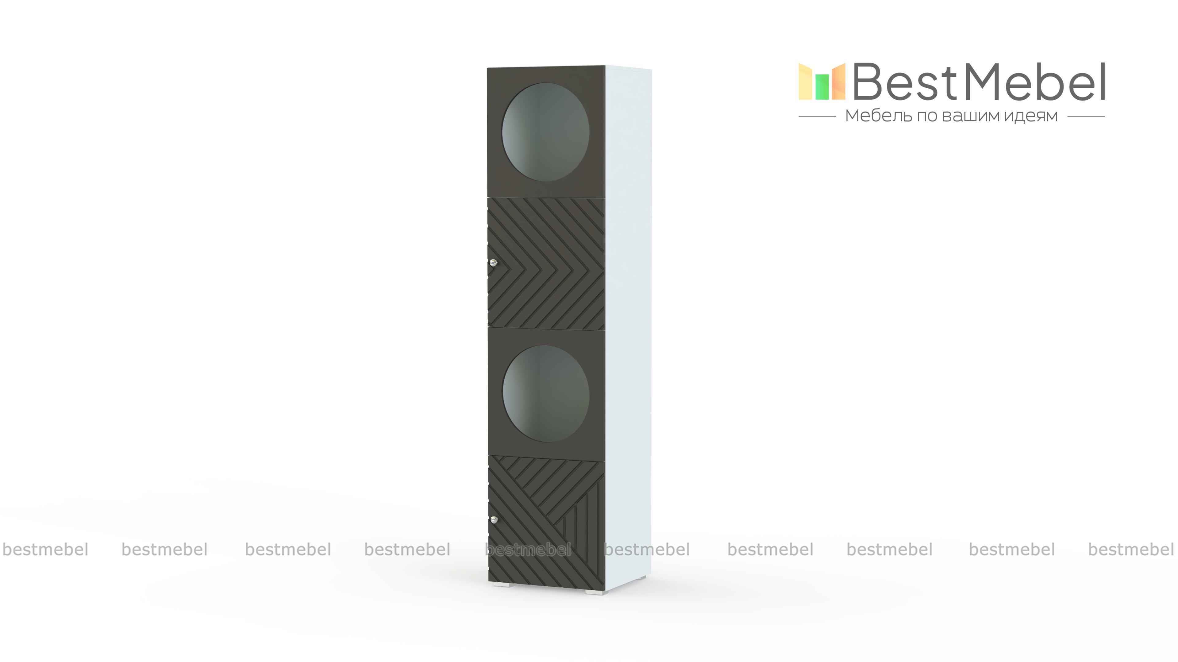 Шкаф-пенал Авелин 5 BMS одинаково удачно впишется в современную гостиную, прихожую или детскую комнату, компактно разместив вещи на полках. Стильный пенал с геометрическим дизайном выполнен из прочной ламинированной плиты и фрезерованной МДФ. Закрытые глухими фасадами секции чередуются с витринами, украшенными круглыми вырезами. Купить шкаф-пенал Авелин 5 BMS в необходимых размерах и оттенках нашего каталога вы всегда сможете на сайте интернет-магазина.