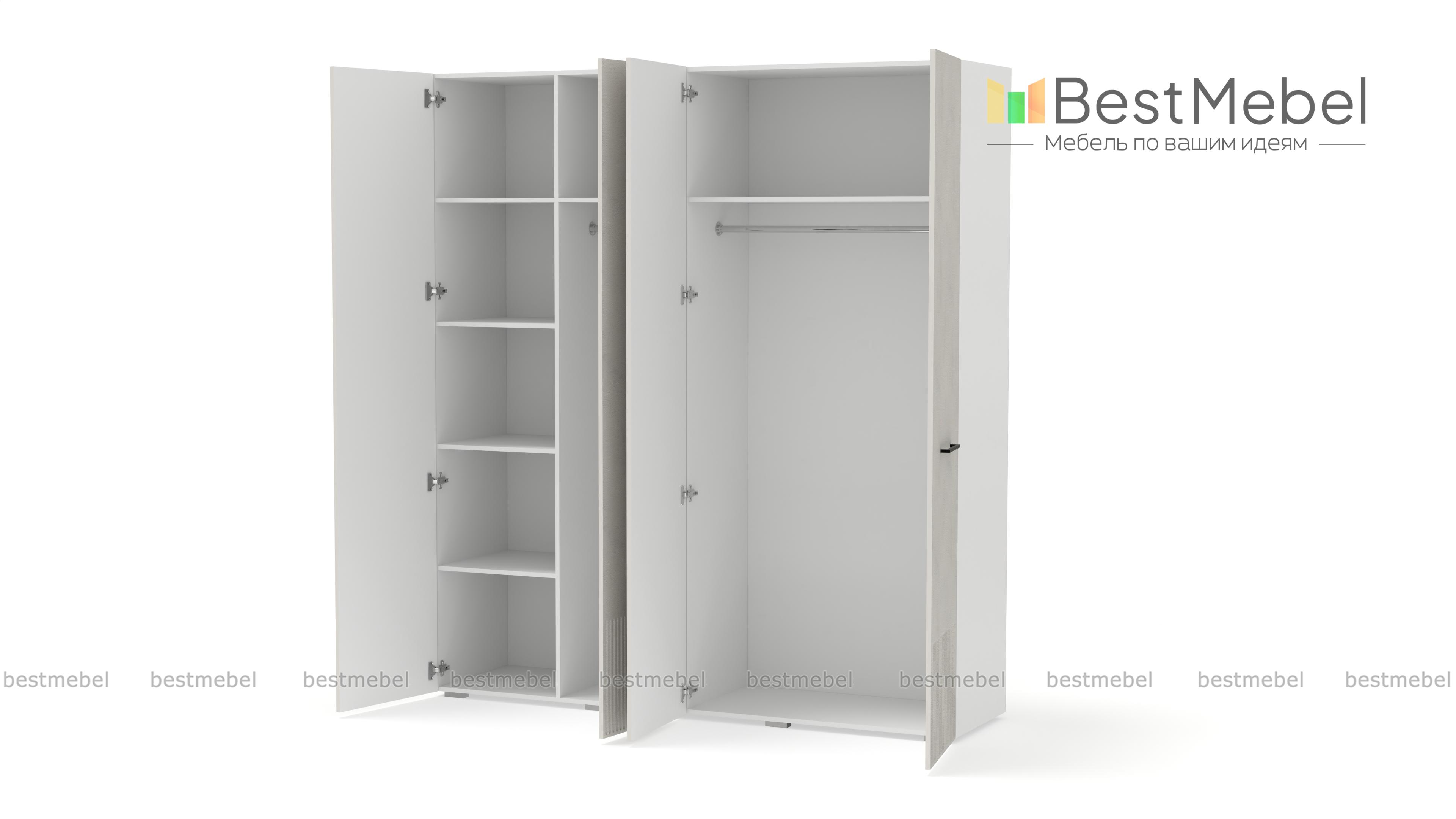 Шкаф распашной Декарт 4 BMS выполнен в традиционном стиле с поперечными контрастными ручками и фрезеровкой, что придает ему современный вид. Сочетание двух штанг разной длины и полок позволяет вам удобно организовать хранение одежды и коробок с обувью. Устойчивый к механическим повреждениям и влаге фасад из МДФ легко содержать в чистоте. Купить шкаф распашной Декарт 4 BMS с выбором размеров, цвета и наполнения вы всегда сможете в нашем интернет-магазине.