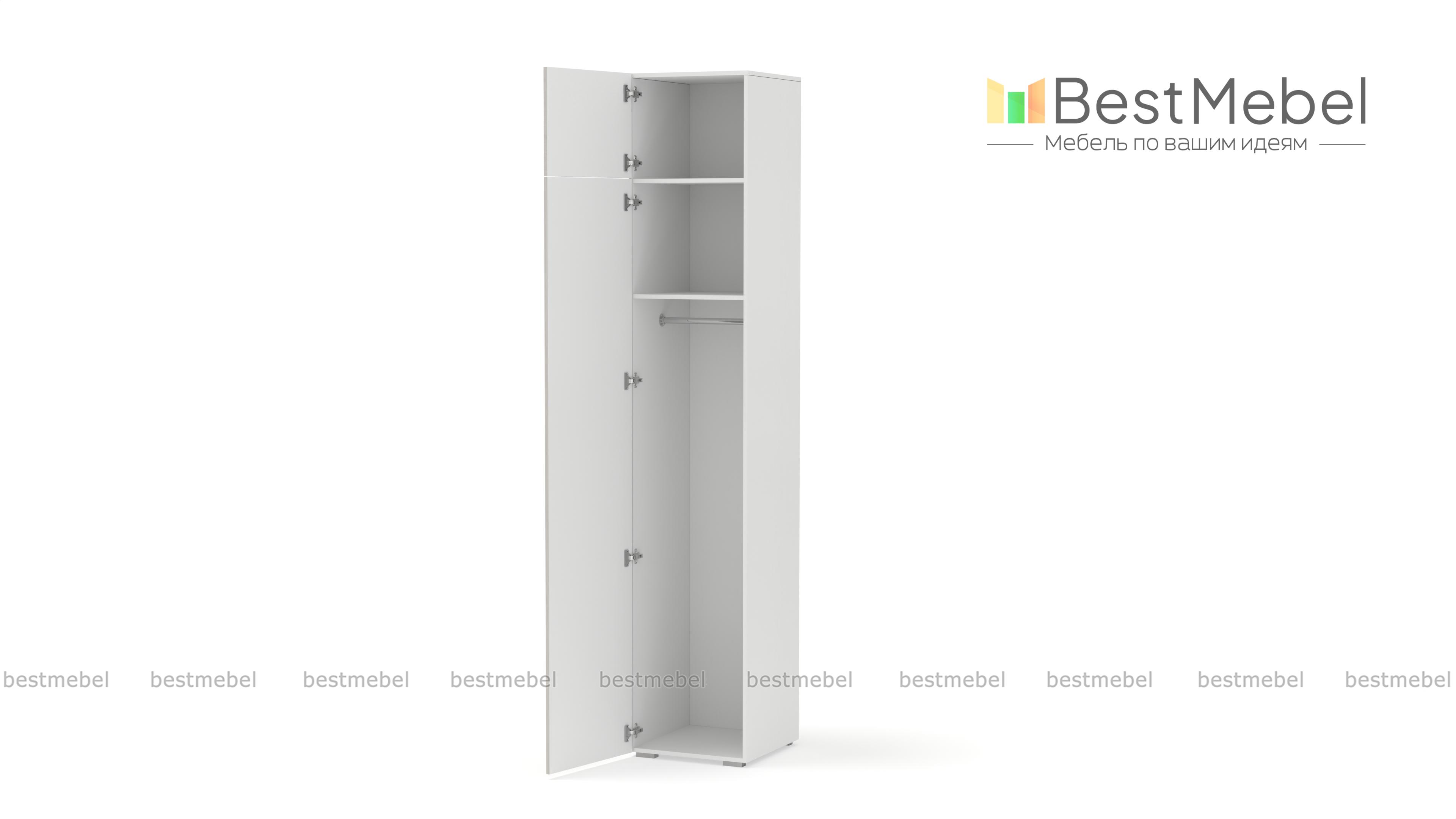 Шкаф распашной Декарт 7 BMS с одной дверцей и антресолью подходит для самых разных помещений. Высокий узкий шкаф с простым и выразительным благодаря фрезеровке дизайном оснащен необходимой для размещения вешалок с одеждой перекладиной и полочкой. Дополнительный отсек сверху значительно увеличивает пространство для хранения. Купить шкаф распашной Декарт 7 BMS вы сможете недорого в нашем интернет-магазине, подобрав подходящие именно вам цвета и размеры.