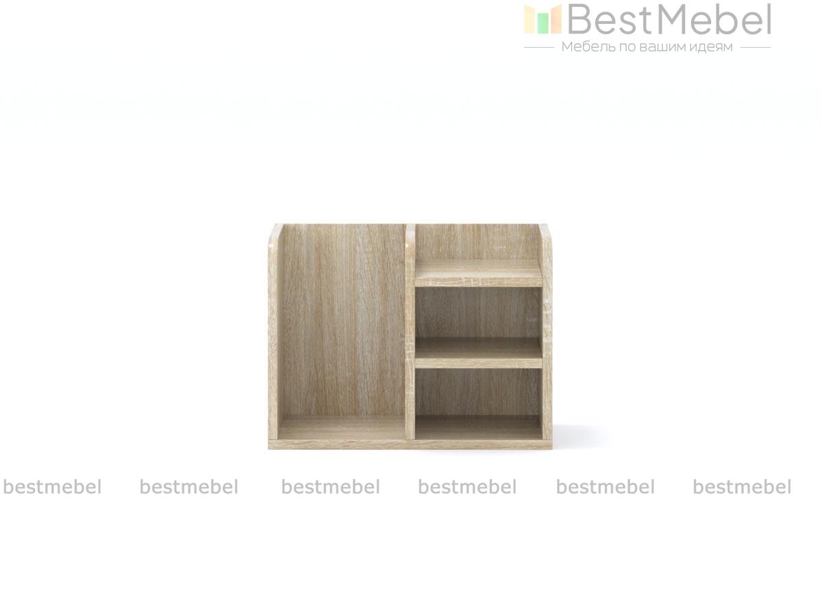 Надстройка Лилия 5 BMS устанавливается на столешницу и выполняет функцию органайзера. Компактная и вместительная, надстройка оборудована полностью открытой секцией и разделенной двумя полочками для удобного хранения книг, папок и канцелярских принадлежностей. Модель безопасно скруглена по углам и выполняется в светлых древесных тонах. Купить надстройку Лилия 5 BMS с возможностью изменения цвета и размеров приглашаем недорого в наш интернет-магазин.