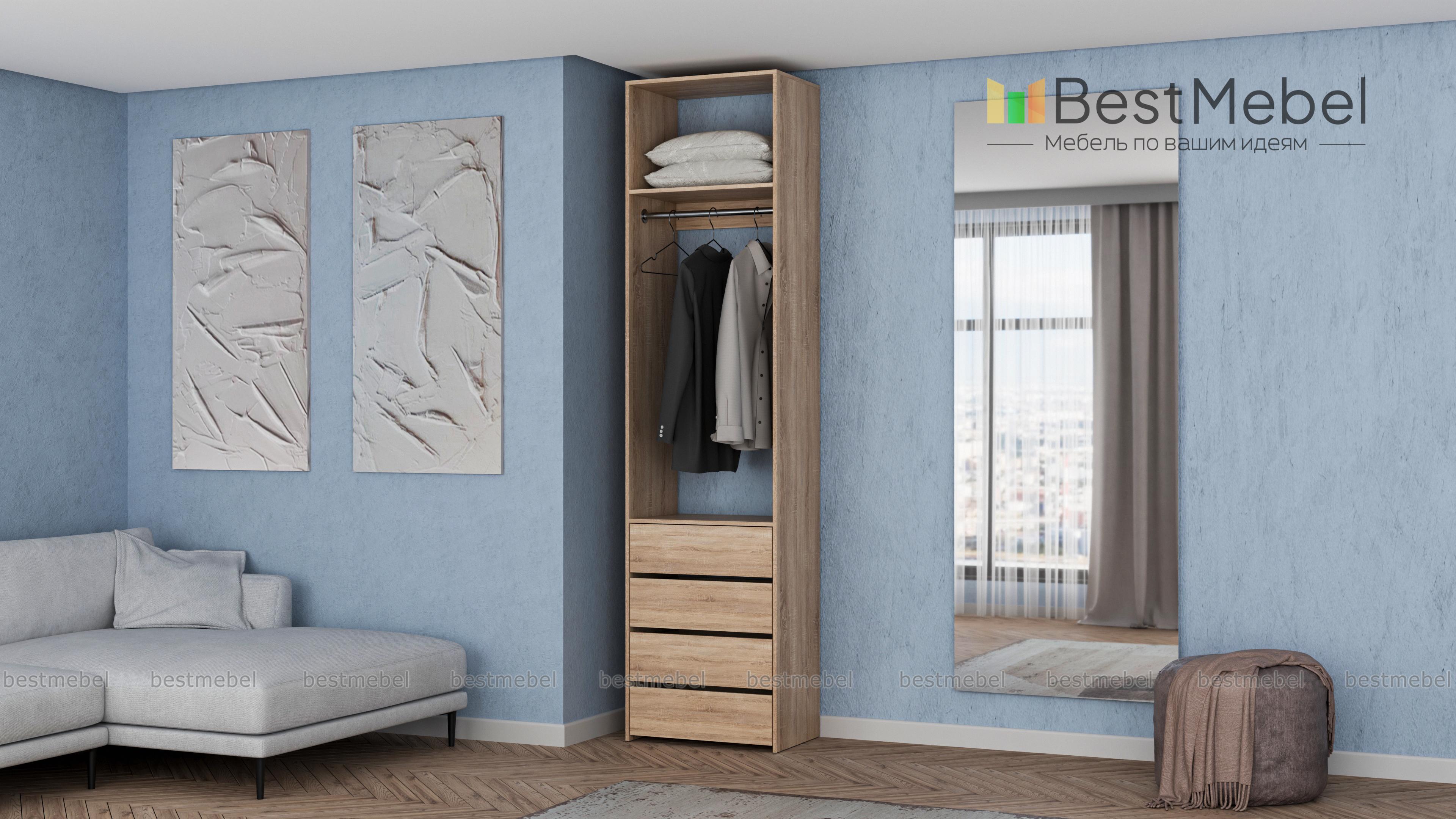 Стеллаж для одежды Мирта 32 BMS позволит вам эффективно использовать даже небольшое пространство. Для удобного доступа к одежде и обуви открытая конструкция оборудована металлической штангой, верхней полкой и четырьмя выдвижными ящиками. Лаконичный дизайн без декора и накладной фурнитуры легко сочетать с разными по стилю интерьерами. Купить стеллаж для одежды Мирта 32 BMS вы сможете на сайте нашего интернет-магазина в необходимом размере и оттенке.