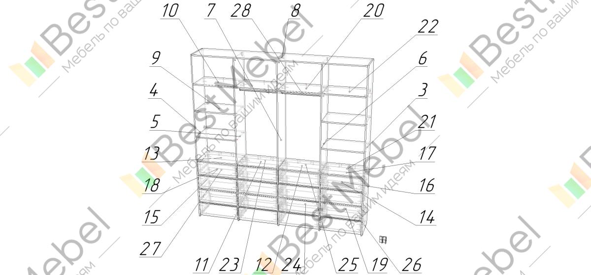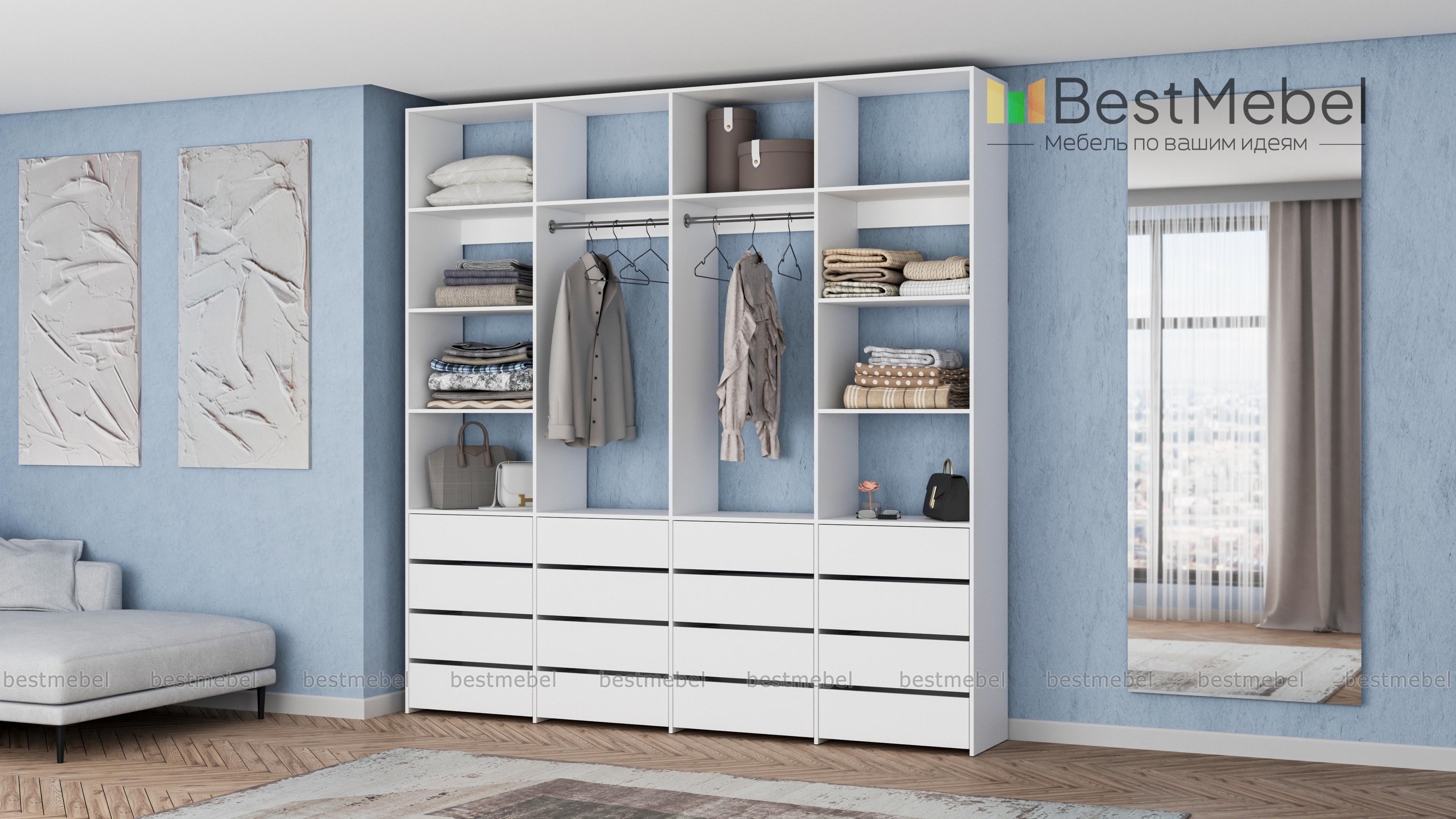 Стеллаж для одежды Мирта 63 BMS — это продуманная система хранения и функциональный современный дизайн. Две штанги и полки помогут разместить вешалки с одеждой, обувные коробки и текстиль, а четыре ряда выдвижных ящиков станут полноценной заменой бельевому комоду. Для изготовления стеллажа использована ламинированная ДСП высокого качества и надежная фурнитура. Купить стеллаж для одежды Мирта 63 BMS с выбором размера и цвета по каталогу приглашаем в наш интернет-магазин.