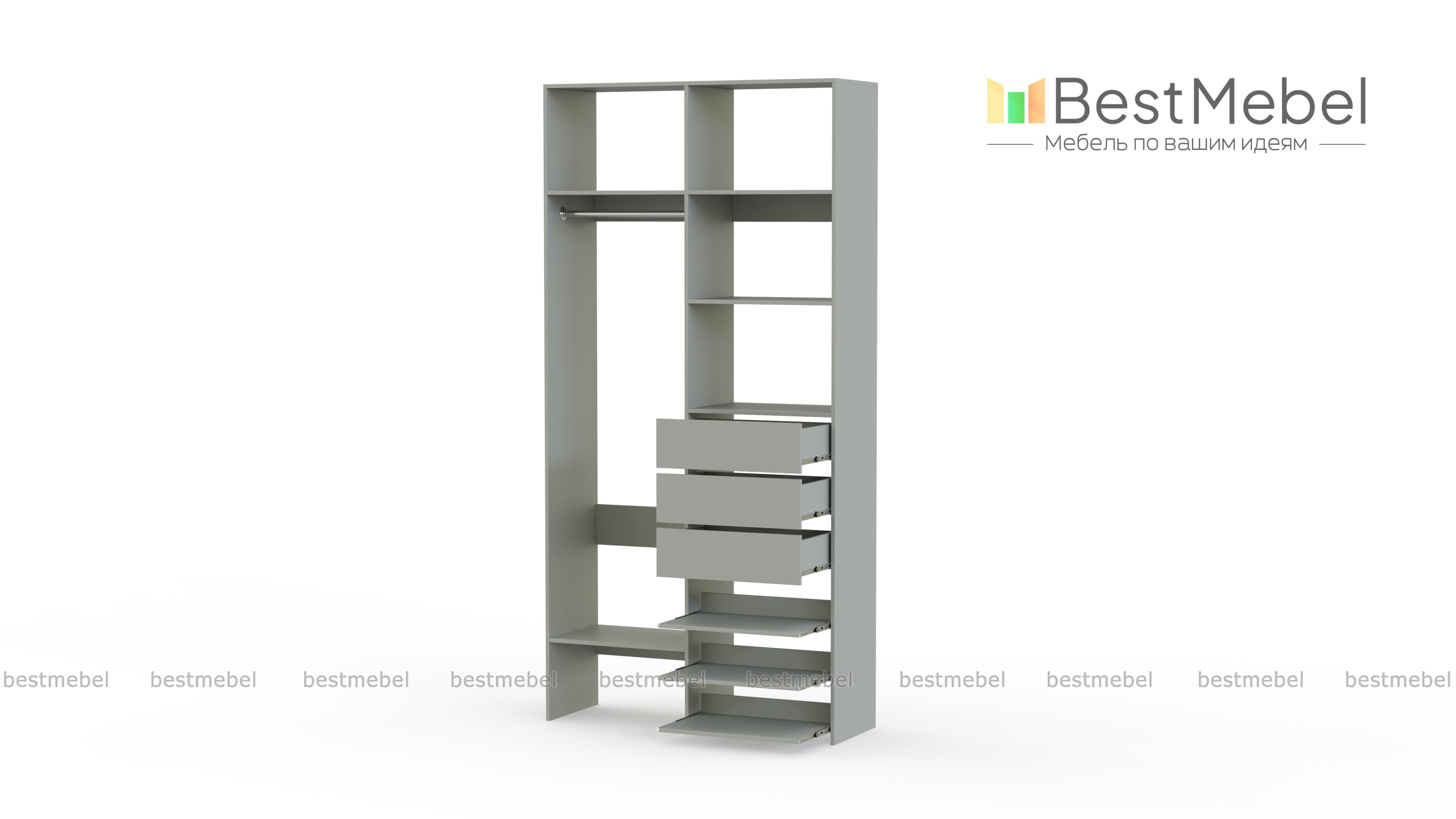 Стеллаж для одежды Мирта 84 BMS обеспечит базовому гардеробу компактное и бережное хранение. Платяная штанга, три ящика, полки стационарные и выдвижные располагаются на удобной для ежедневного пользования высоте. Благодаря небольшой ширине стеллаж легко впишется в ограниченное пространство гардеробной, маленькой спальни или прихожей. Купить стеллаж для одежды Мирта 84 BMS вы сможете недорого в нашем интернет-магазине, выбрав подходящий размер и цвет.