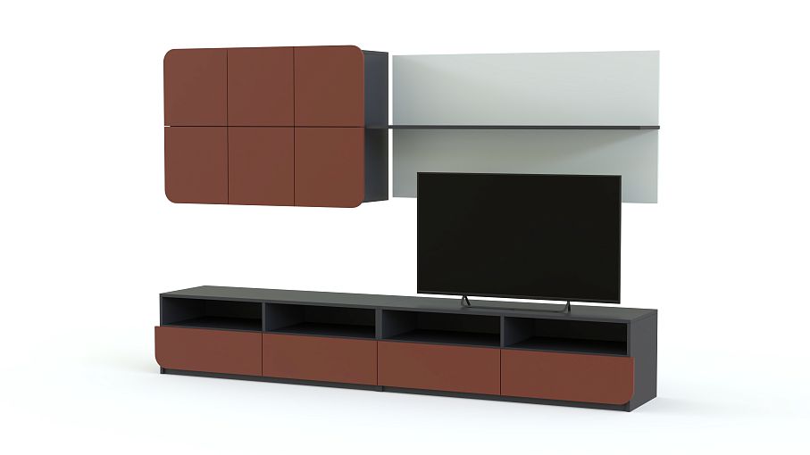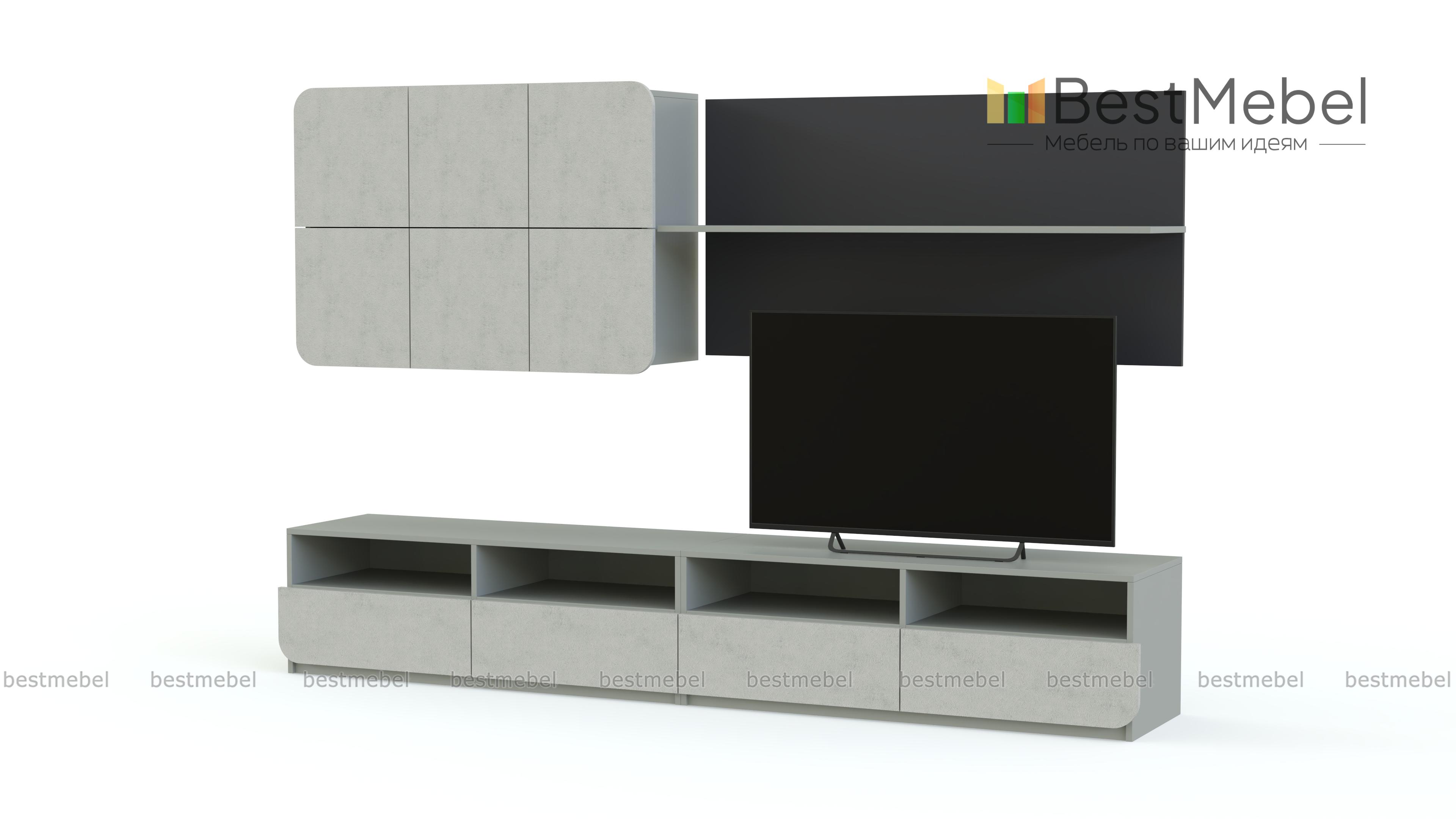 Стенка Модерно 5.1 BMS – современный модульный комплект для просторной гостиной в стиле минимализм и хай-тэк. Отдельные элементы легко вписать в интерьер и эффектно разместить ТВ, предметы декора и книги. Стенка состоит из низкой напольной тумбы с четырьмя выдвижными ящиками и глубокими нишами, навесного шкафа с четырьмя закрытыми отделениями и лаконичного панно с полкой контрастного цвета. Купить Стенку Модерно 5.1 BMS, подобрав оптимальное цветовое сочетание, вы сможете по доступной цене в нашем интернет-магазине.