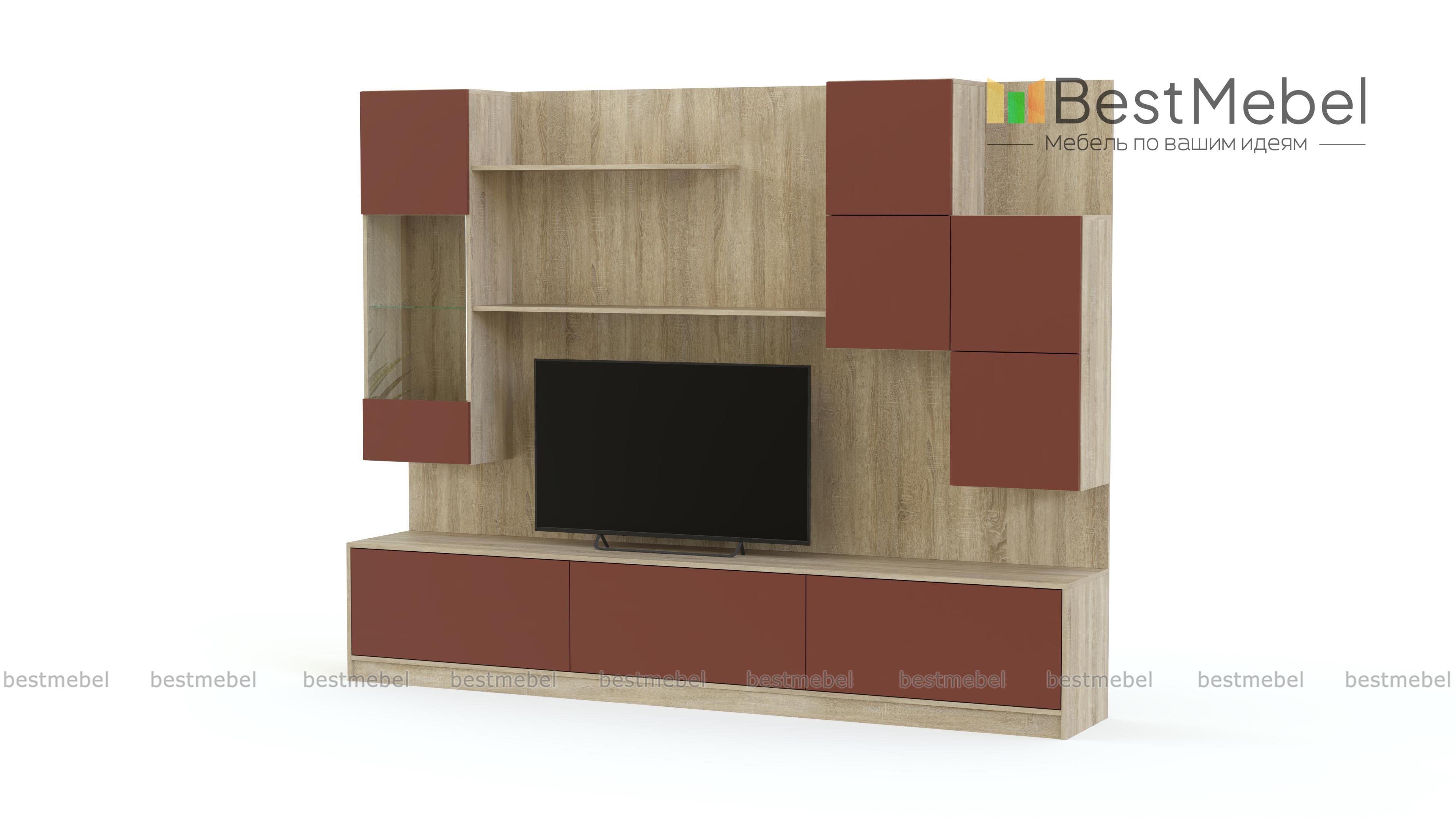 Стенка для гостиной Ева М BMS поможет нестандартно оформить зону ТВ в интерьерах стиля минимализм или лофт. Эффектная геометричная композиция включает в себя широкую низкую тумбу под ТВ с выдвижными ящиками, открытые книжные полки, навесную витрину и шкафчики с глухими распашными отделениями, закрепленные на задней панели. Контрастные древесные тона скомбинированы с нейтральными серо-графитовыми. Купить стенку для гостиной Ева М BMS по выгодной цене приглашаем на сайт нашего интернет-магазина.