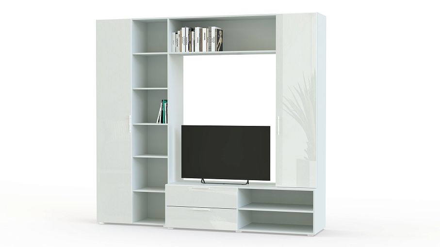 Стенка Ватсон 24 BMS отличается современным дизайном, вместительностью и компактными размерами, которые делают модель прекрасным выбором для небольших гостиных. Композиция с нишей под ТВ в центре включает в себя тумбу для аппаратуры, пенал, комбинированный распашной шкаф со стеллажом и навесную открытую полку для книг и предметов декора. Корпус белых тонов эффектно сочетается с глянцем фасадов. Купить стенку Ватсон 24 BMS вы сможете в нашем интернет-магазине по доступной цене.