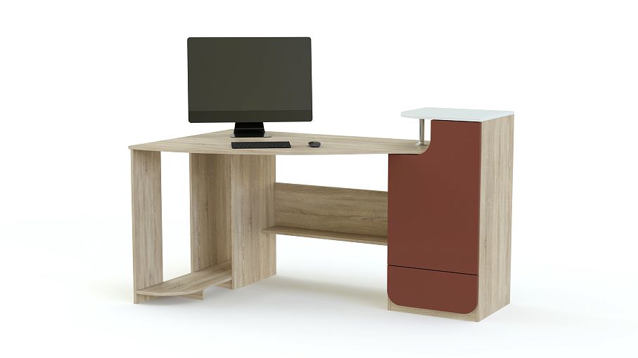 Стол компьютерный МБ-42.1 BMS поможет оборудовать комфортное и стильное рабочее место. Практичная угловая модель с боковым отделением выгодно использует доступное пространство и будет подходящим вариантом для малогабаритного помещения. Под столешницей с закругленным краем располагается полка для бумаг и отделение для системного блока. Вместительная боковая тумба оборудована распашным отделением с полками, выдвижным ящиком для канцелярских мелочей и удобной надстройкой на хромированной опоре. Купить стол компьютерный МБ-42.1 BMS вы сможете в нашем интернет-магазине по лучшей цене.