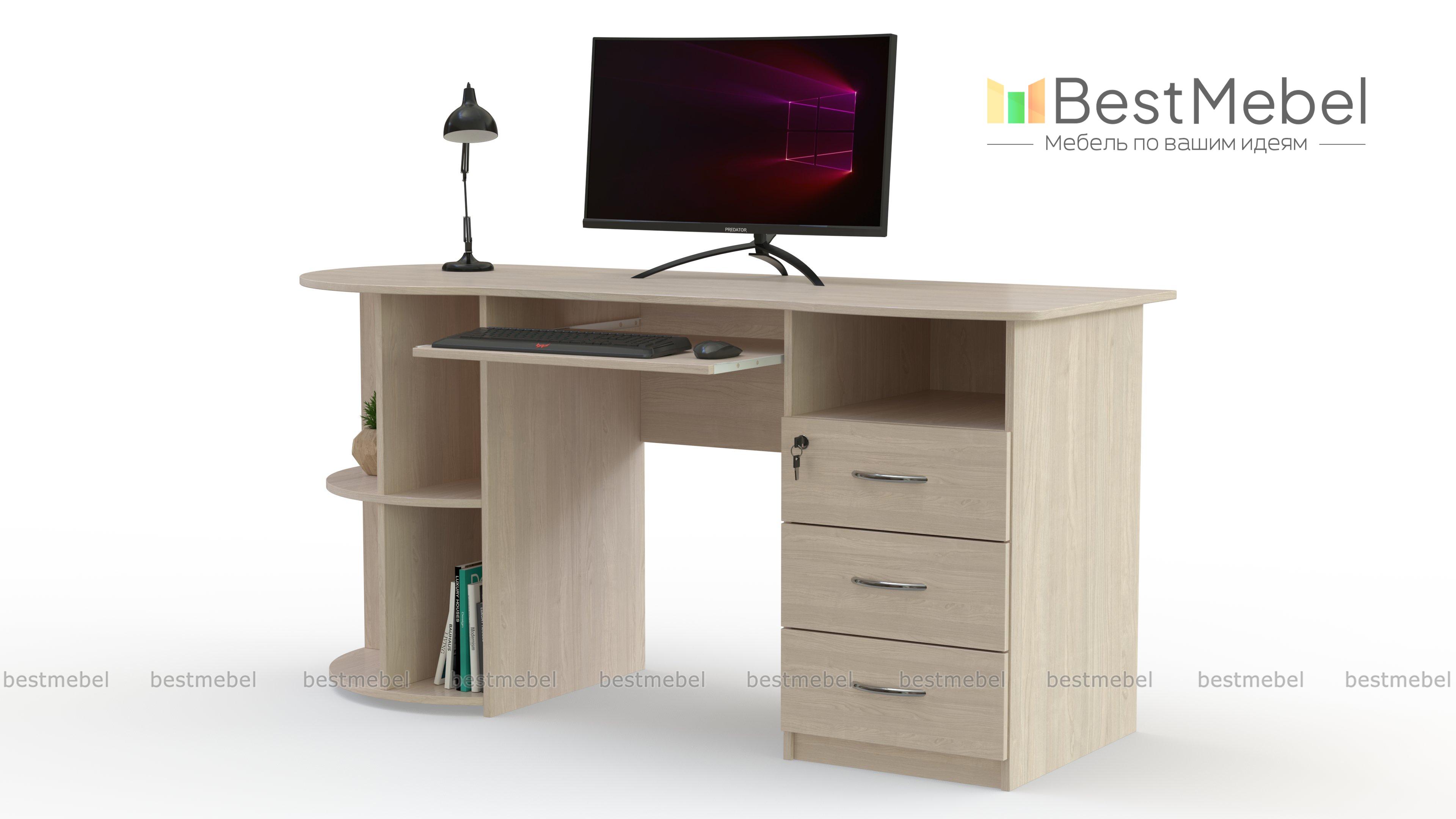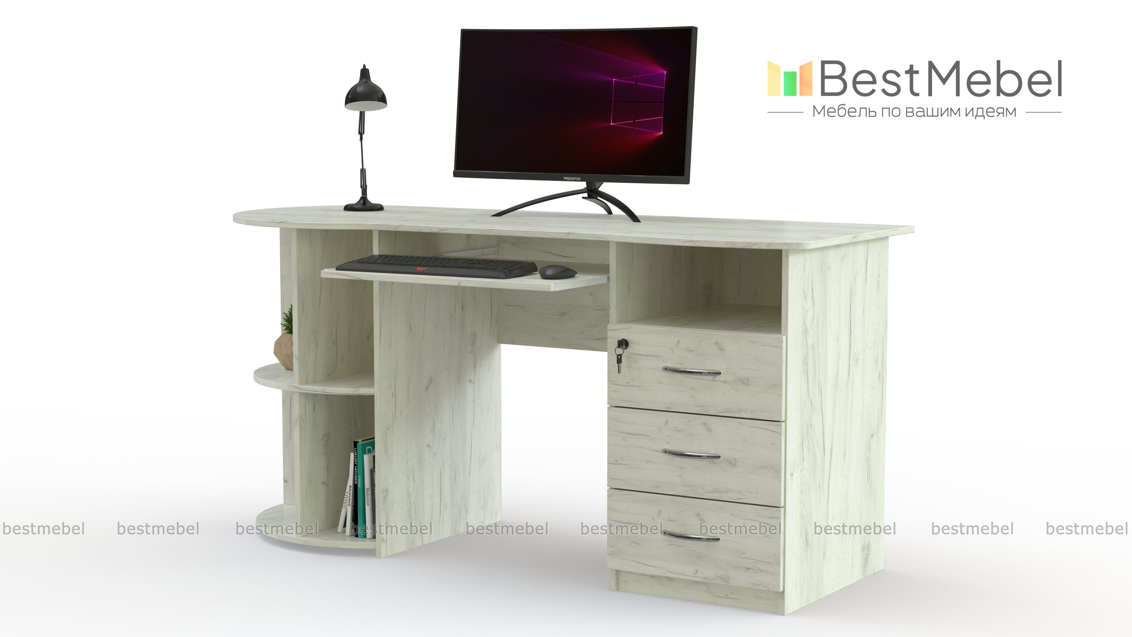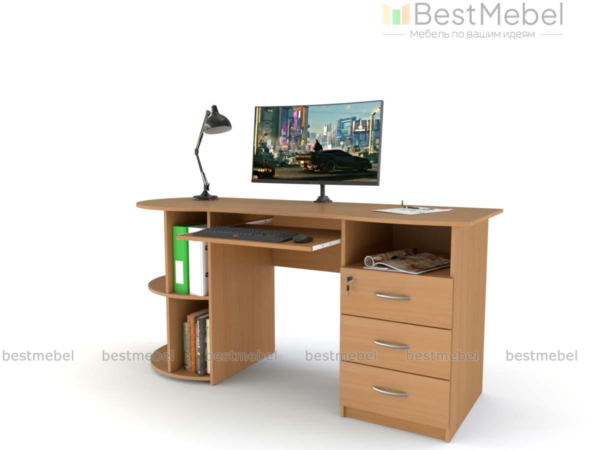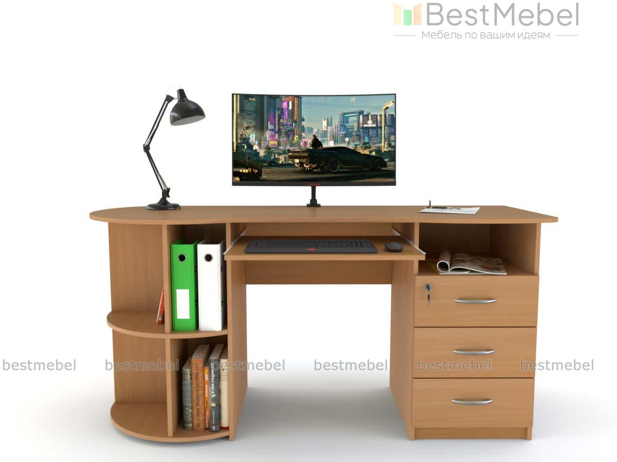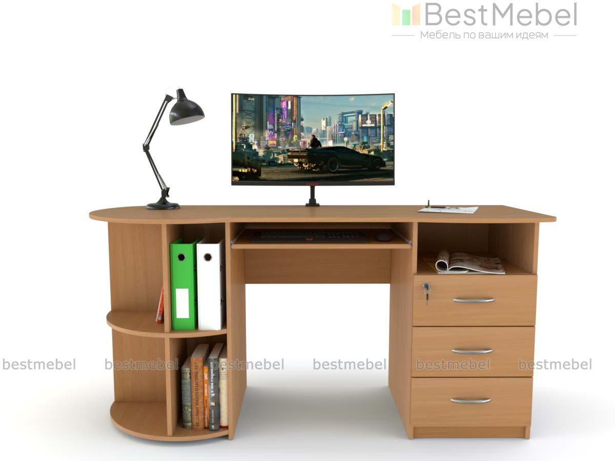 Письменный стол ПС 4002 M1 BMS оборудован радиусным стеллажом с одной стороны и тумбой, верхний ящик которой закрывается на ключ, - с другой. Эргономично вырезанная столешница без острых углов дополнена выкатной полочкой для удобного размещения клавиатуры. Модель современного дизайна органично впишется в офисный и домашний интерьер и сделает рабочий процесс комфортным. Купить письменный стол ПС 4002 M1 BMS приглашаем на сайт нашего интернет-магазина с выбором размеров и цвета по каталогу.