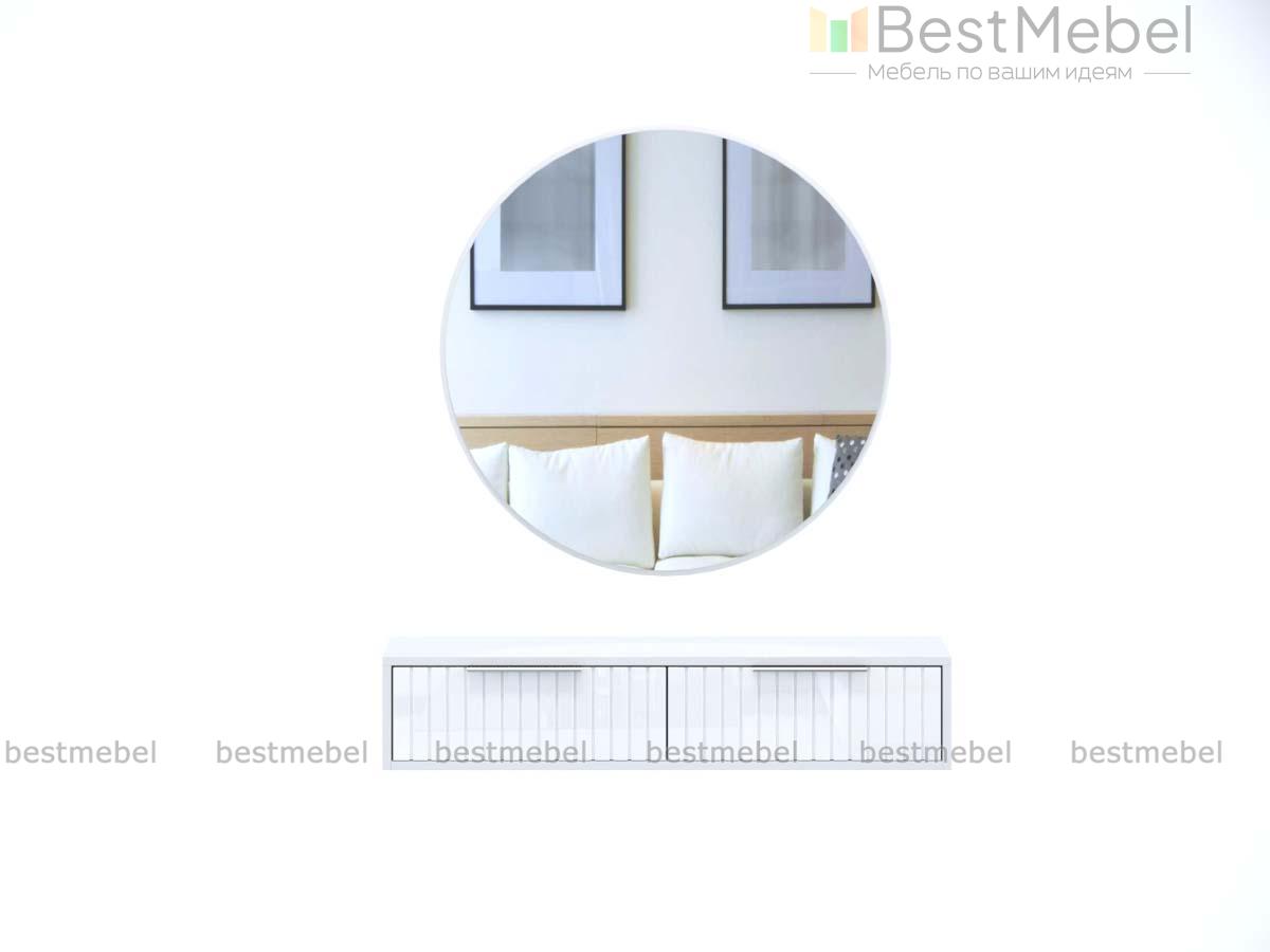 Туалетный стол Фьюго 4 BMS – практичное дополнение спального интерьера и стильный аксессуар. Навесная композиция в духе модерна объединила большое круглое зеркало в раме и консоль с широкой столешницей и двумя выдвижными ящиками для хранения косметики, украшений и прочих мелочей. Глянцевые поверхности долговечны и просты в уходе, фасад столика декорирован фрезеровкой. Купить туалетный стол Фьюго 4 BMS вы сможете в нашем интернет-магазине, подобрав гармонирующее с интерьером цветовое решение.