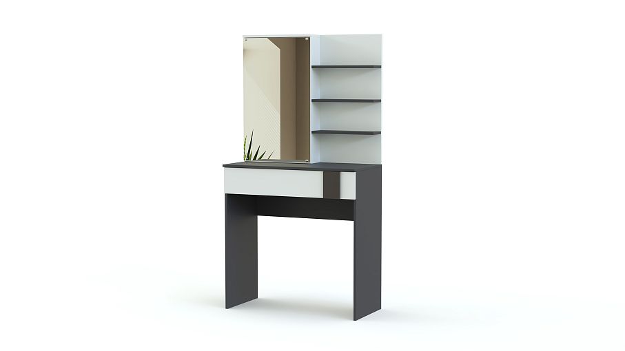 Туалетный столик Зоя 1 BMS сделает спальный интерьер более комфортным и функциональным. Модель лаконичного дизайна с геометричным декором фасада выполнена из качественной ламинированной плиты в контрастных тонах. Прямоугольный столик оборудован просторным выдвижным ящиком под столешницей, зеркальным шкафом и боковыми полочками для удобного хранения уходовых средств. Купить туалетный столик Зоя 1 BMS приглашаем к нам в интернет-магазин.