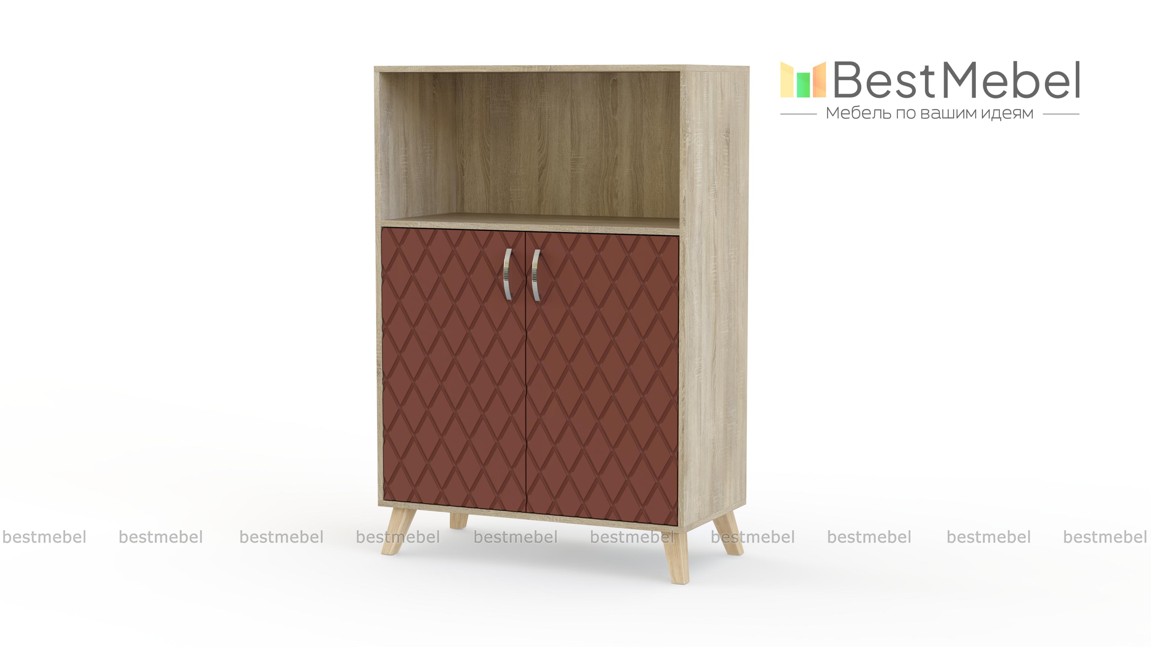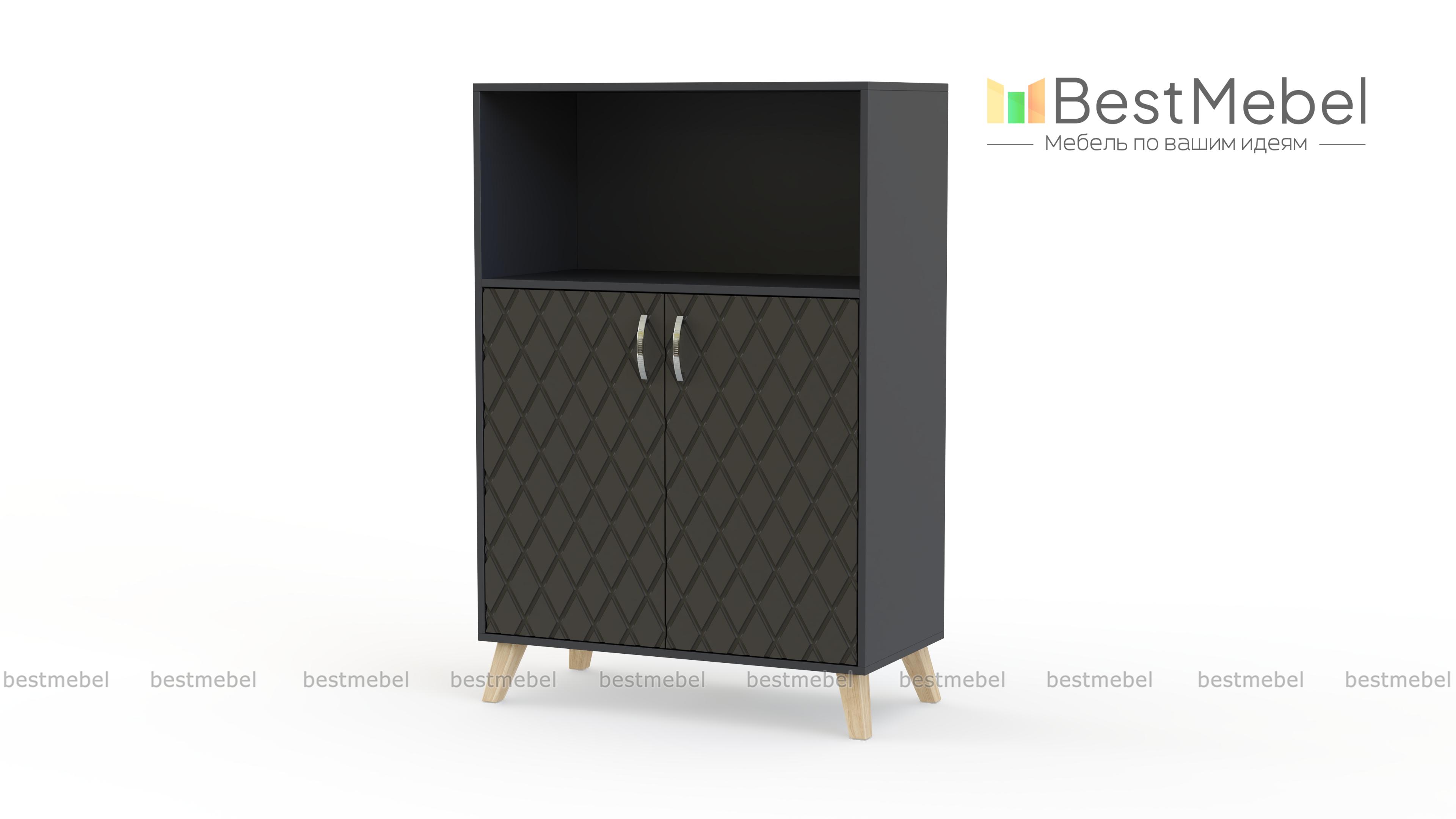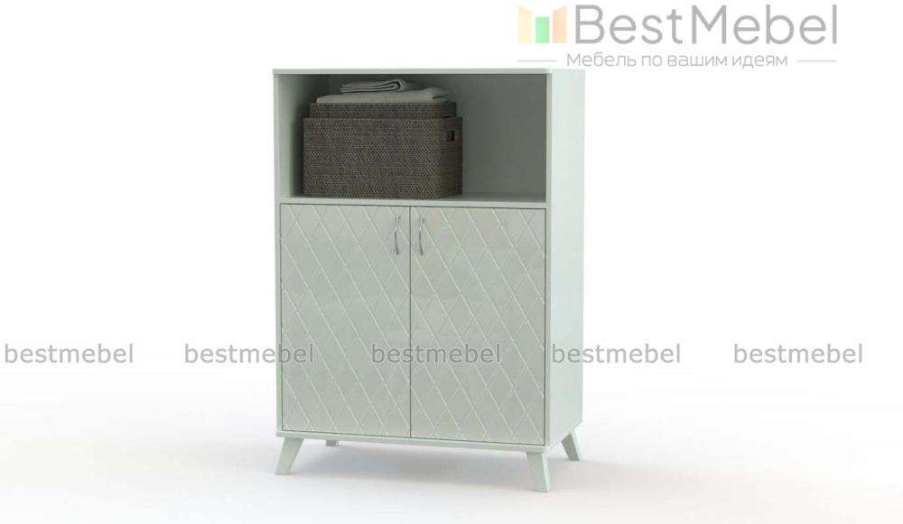 Тумба для белья Лето 5 BMS – компактная и визуально легкая, удобна для помещений небольшого метража. Двухдверная распашная модель, дополненная просторной нишей, прекрасно подходит для хранения постельного белья и одежды. Глянцевый фасад, украшенный фрезерованными ромбами, придает тумбе изящный вид, а высокие ножки в скандинавском стиле делают конструкцию устойчивой. Купить тумбу для белья Лето 5 BMS приглашаем в наш интернет-магазин с выбором фурнитуры и цвета по каталогу.