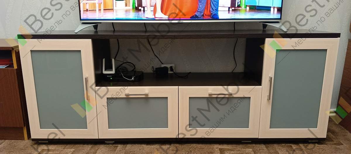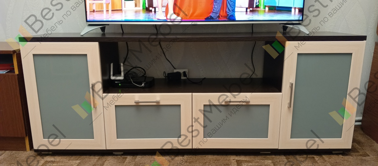 Тумба Комфорт Люкс 9 BMS – компактная и лаконичная по форме модель в современном стиле, универсальное решение для гостиной или спальни. На просторной столешнице легко разместится ТВ, для дополнительной аппаратуры предусмотрена глубокая ниша. Симметрично расположенные распашные отделения и выдвижные ящики упорядочат хранение мелочей. Вставки в рамочных фасадах выполняются в контрастных древесных тонах или цветном окрашенном стекле. Купить тумбу Комфорт Люкс 9 BMS недорого приглашаем в наш интернет-магазин.